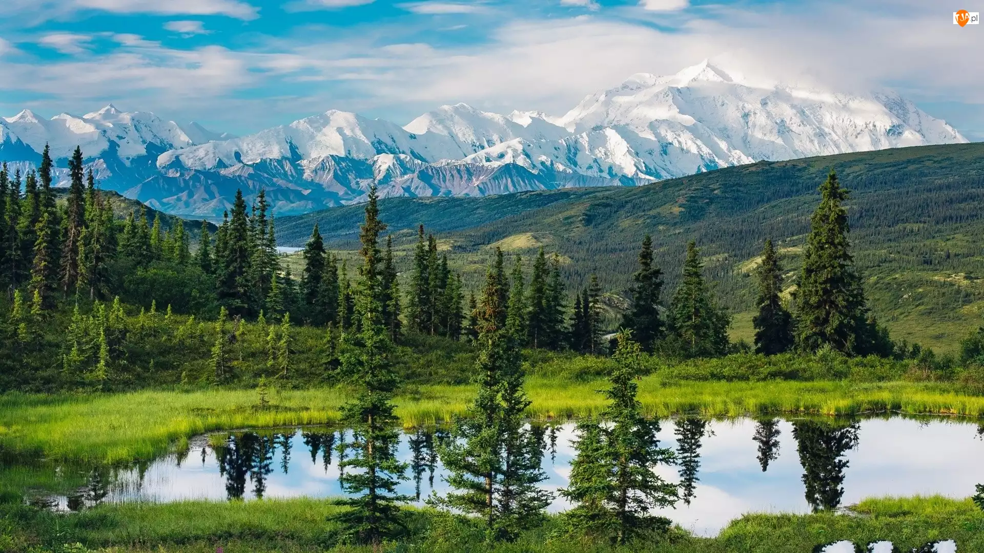 Góry, Drzewa, Stany Zjednoczone, Jezioro, Alaska, Park Narodowy Denali