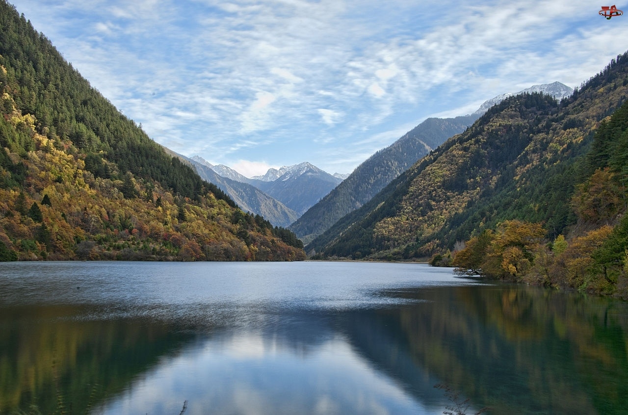 Jezioro, Chiny, Park Narodowy Jiuzhaigou, Góry