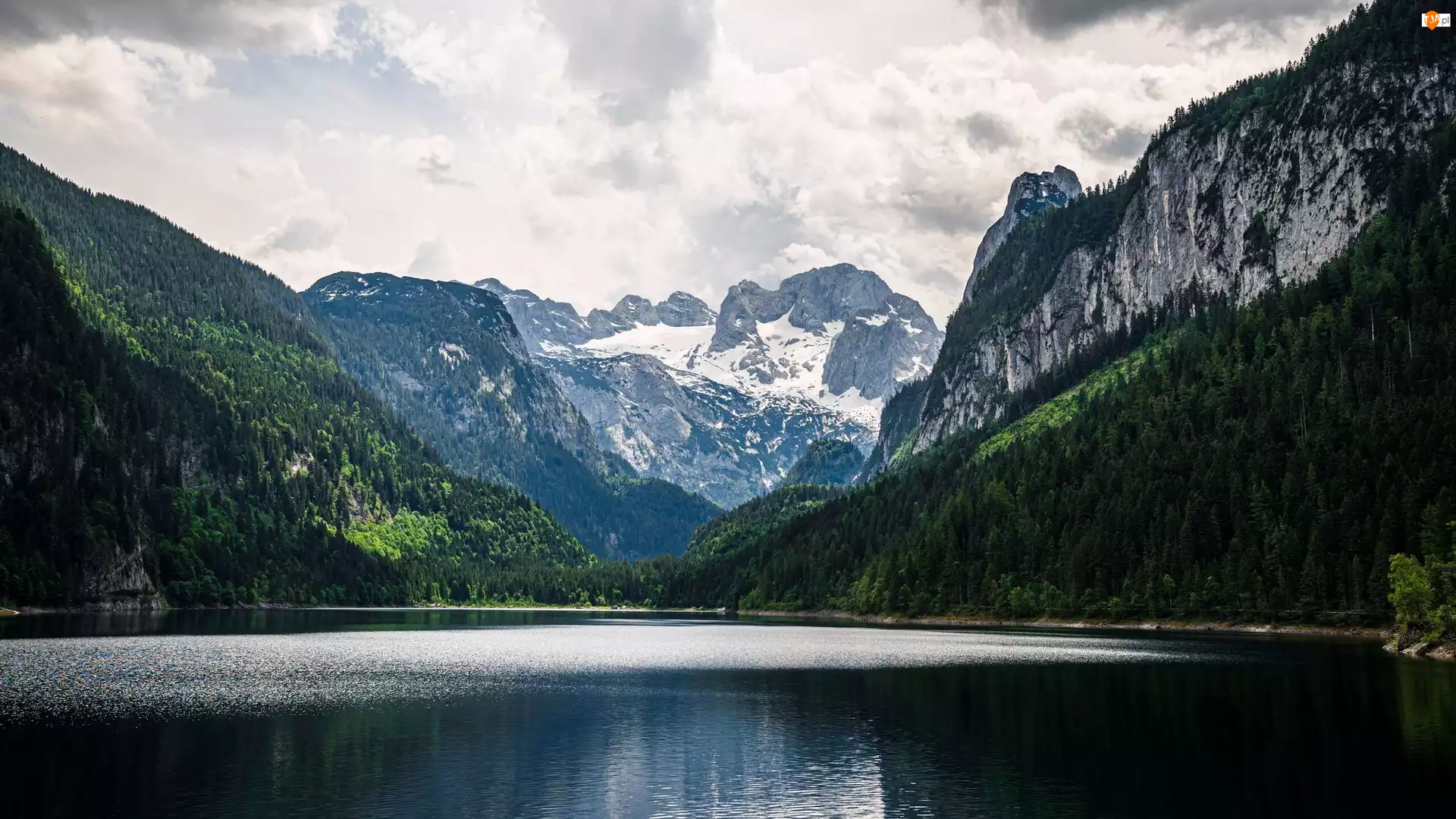 Góry Dachstein, Austria, Gosauseen, Lasy, Jezioro, Zielone