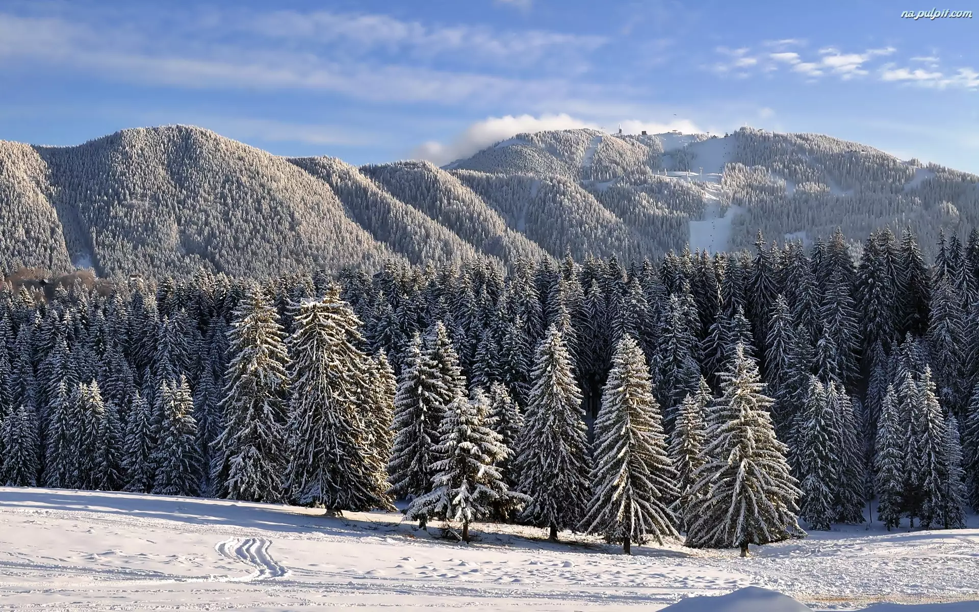 Góry, Iglaste, Zima, Drzewa, Śnieg, Lasy