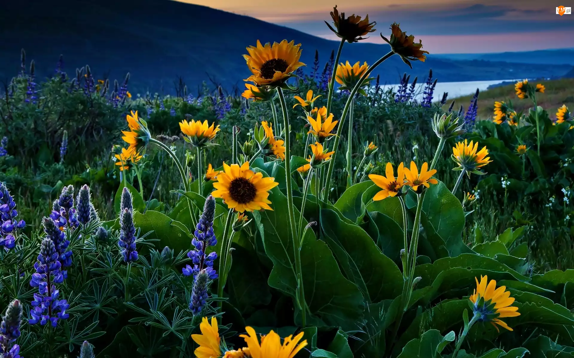 Góry, Łubin, Kwiaty, Słoneczniki