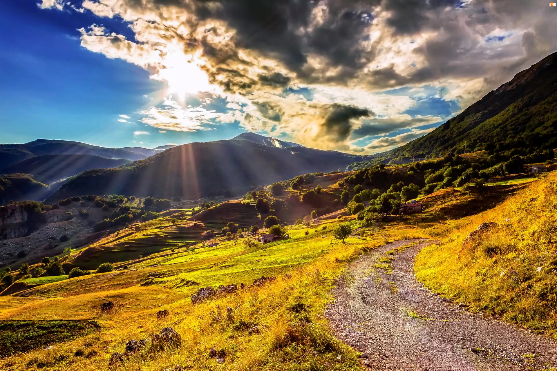 Góry, Niebo, Łąka, Chmury
