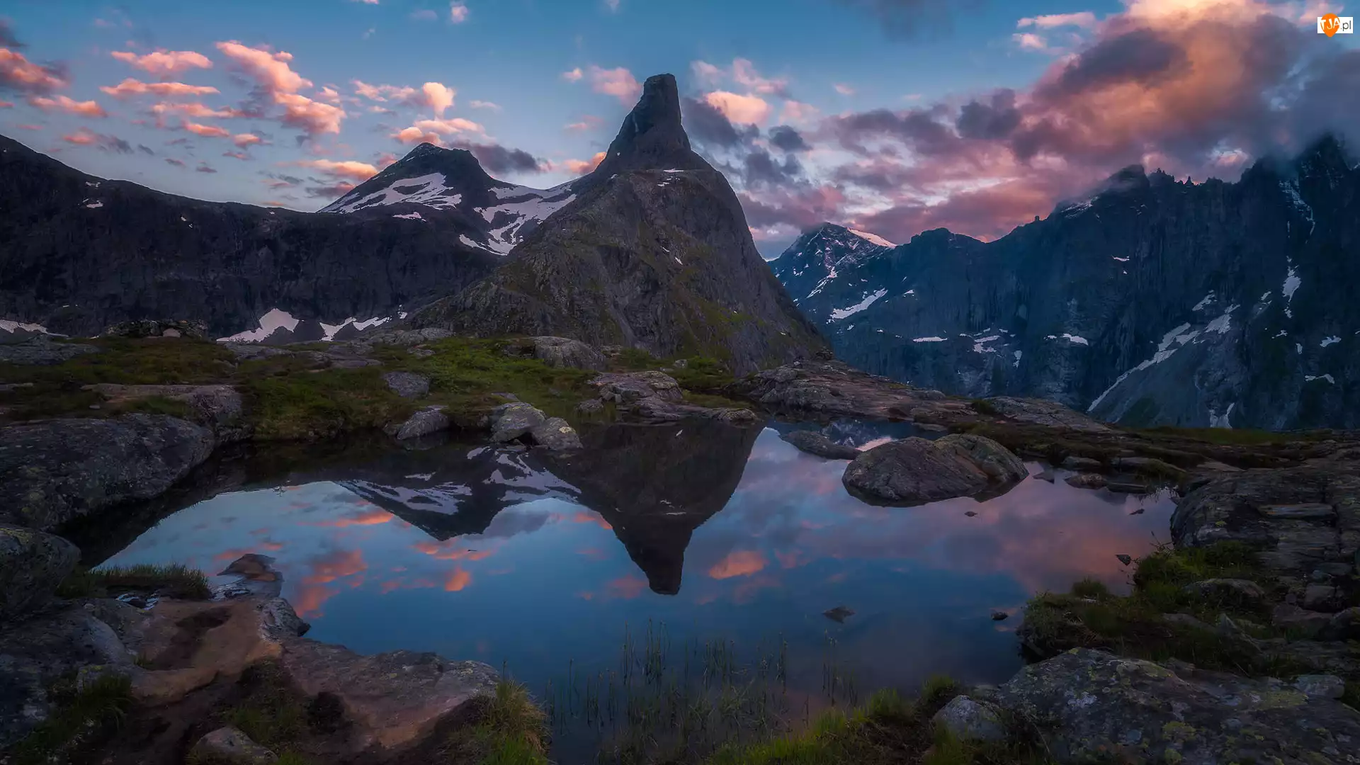 Odbicie, Norwegia, Góry, Dolina Romsdalen, Jezioro