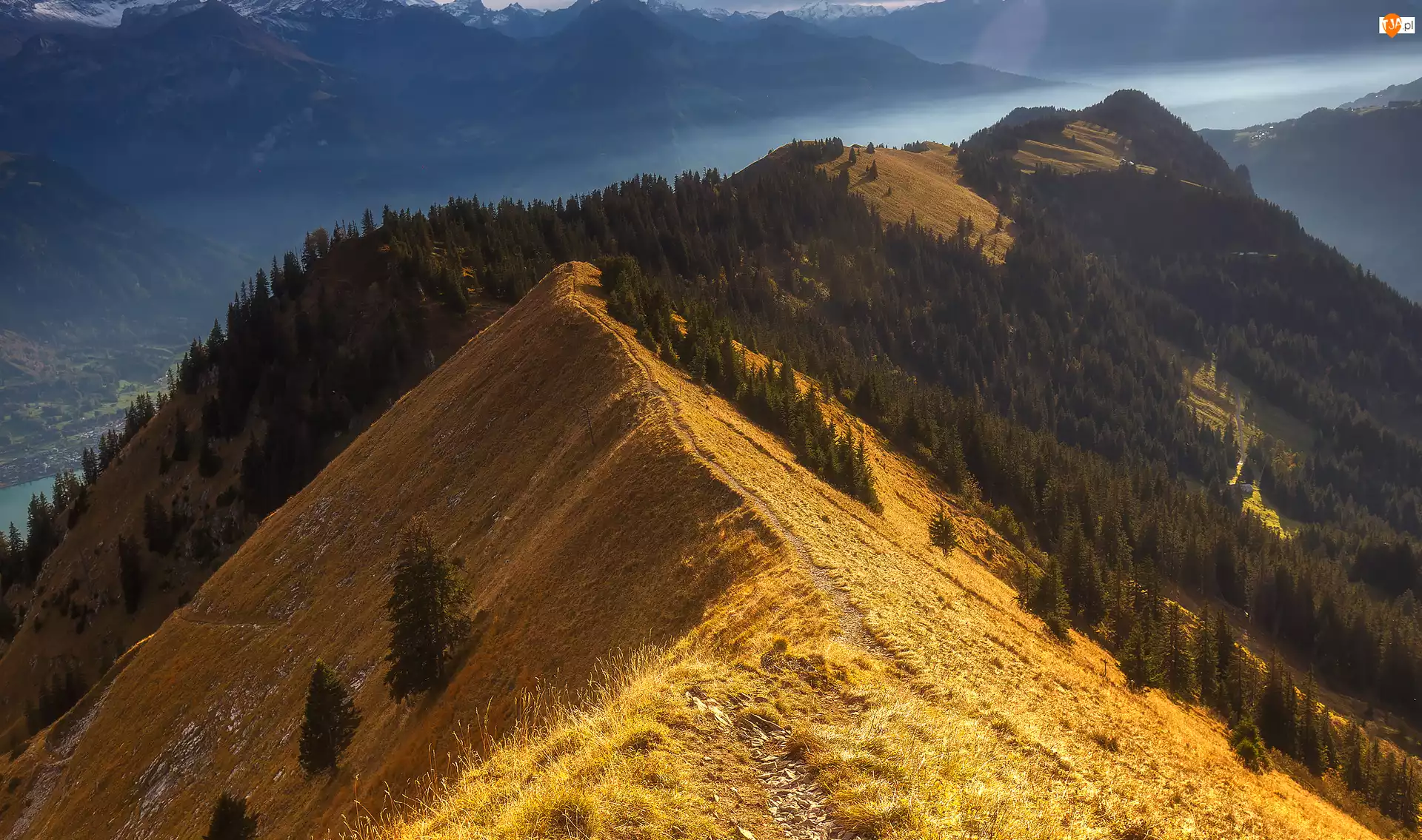Trawa, Jesień, Szczyt, Góry, Drzewa