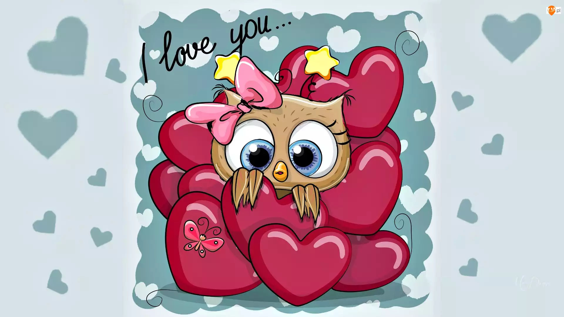 Napis, Grafika 2D, Serca, Sówka, I love you