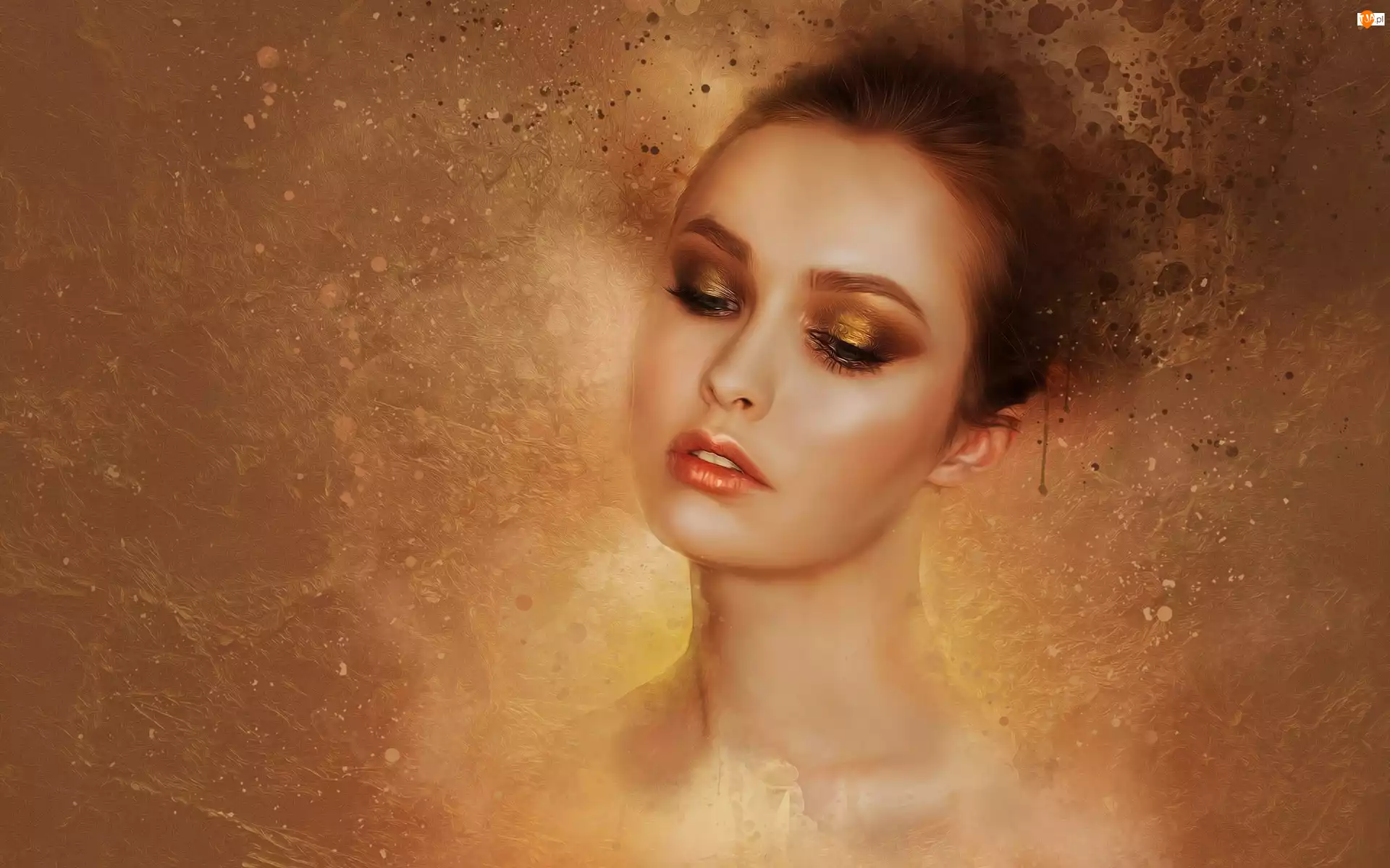 Grafika, Kobieta, Twarz, Makijaż
