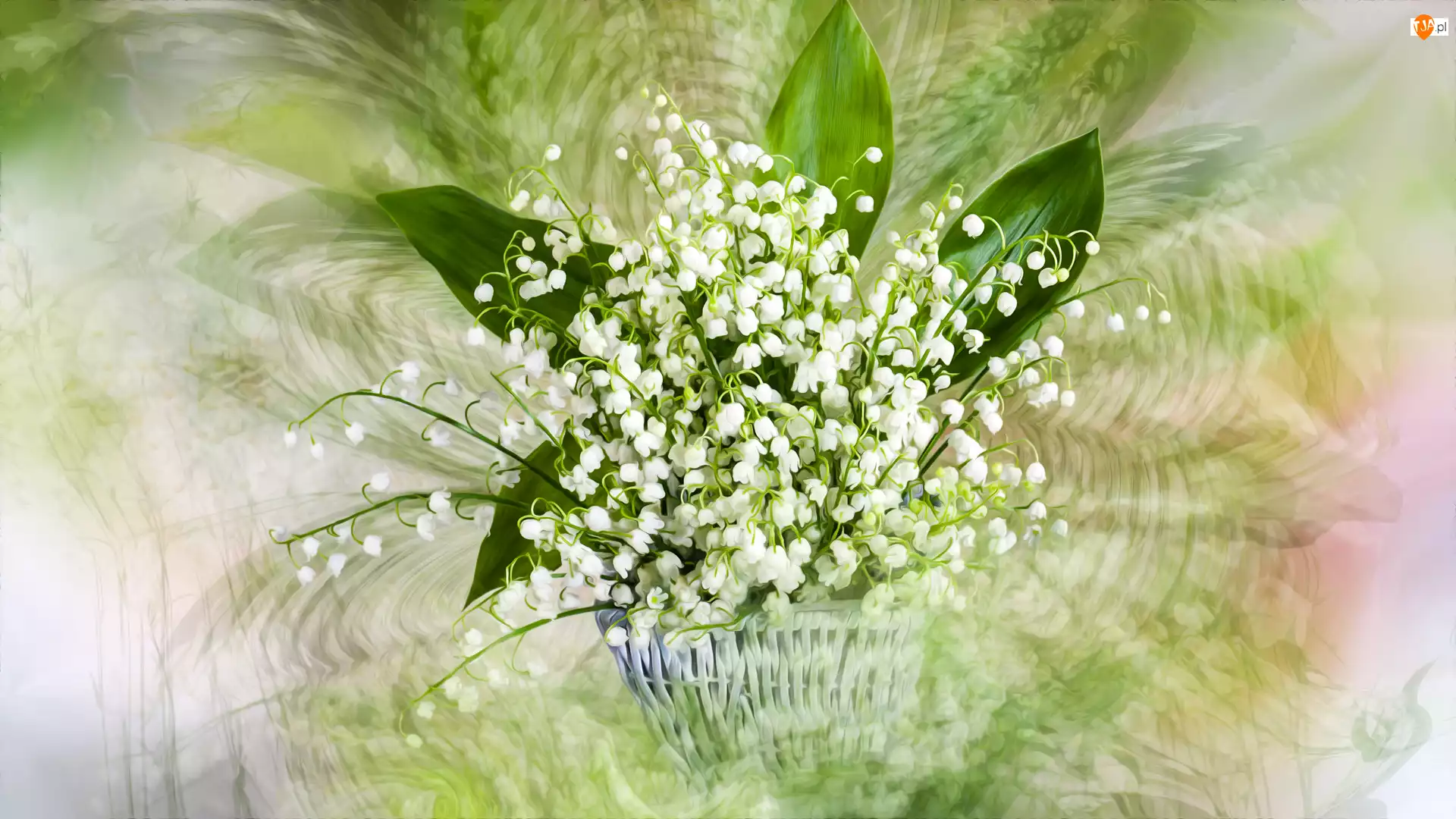 Bukiet, Koszyczek, Kwiaty, Grafika, Konwalia