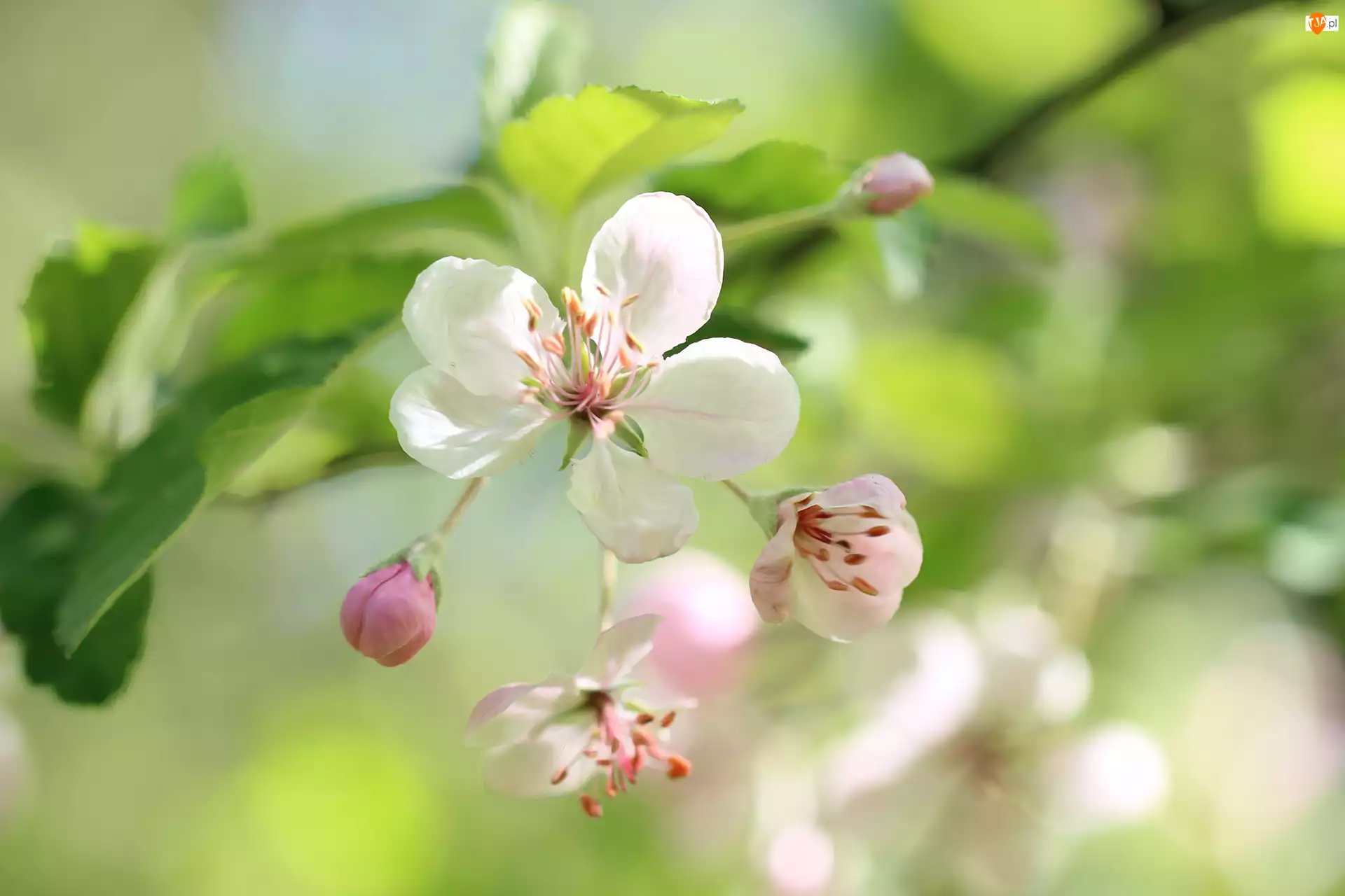 Grafika, Różowe, Kwiaty, Jabłoń
