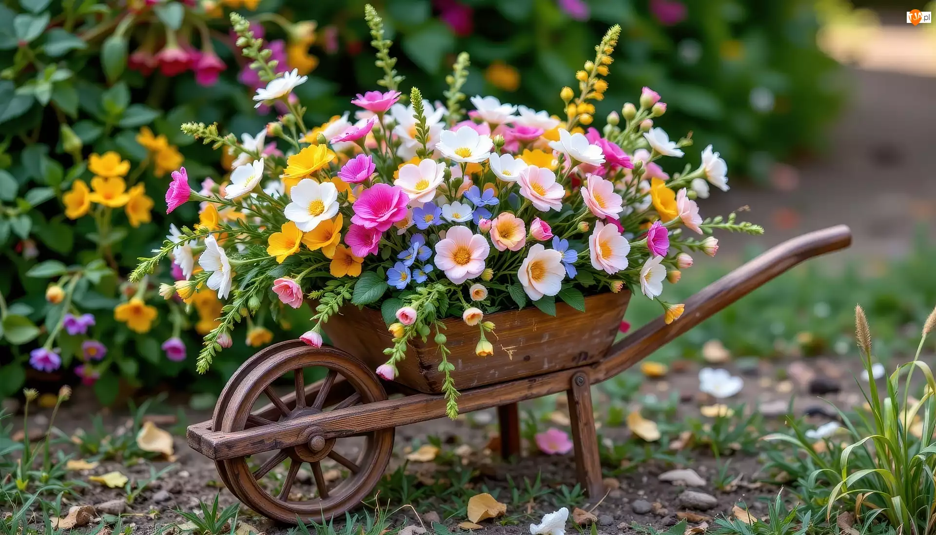 Grafika AI, Taczka, Kwiaty, Bukiet