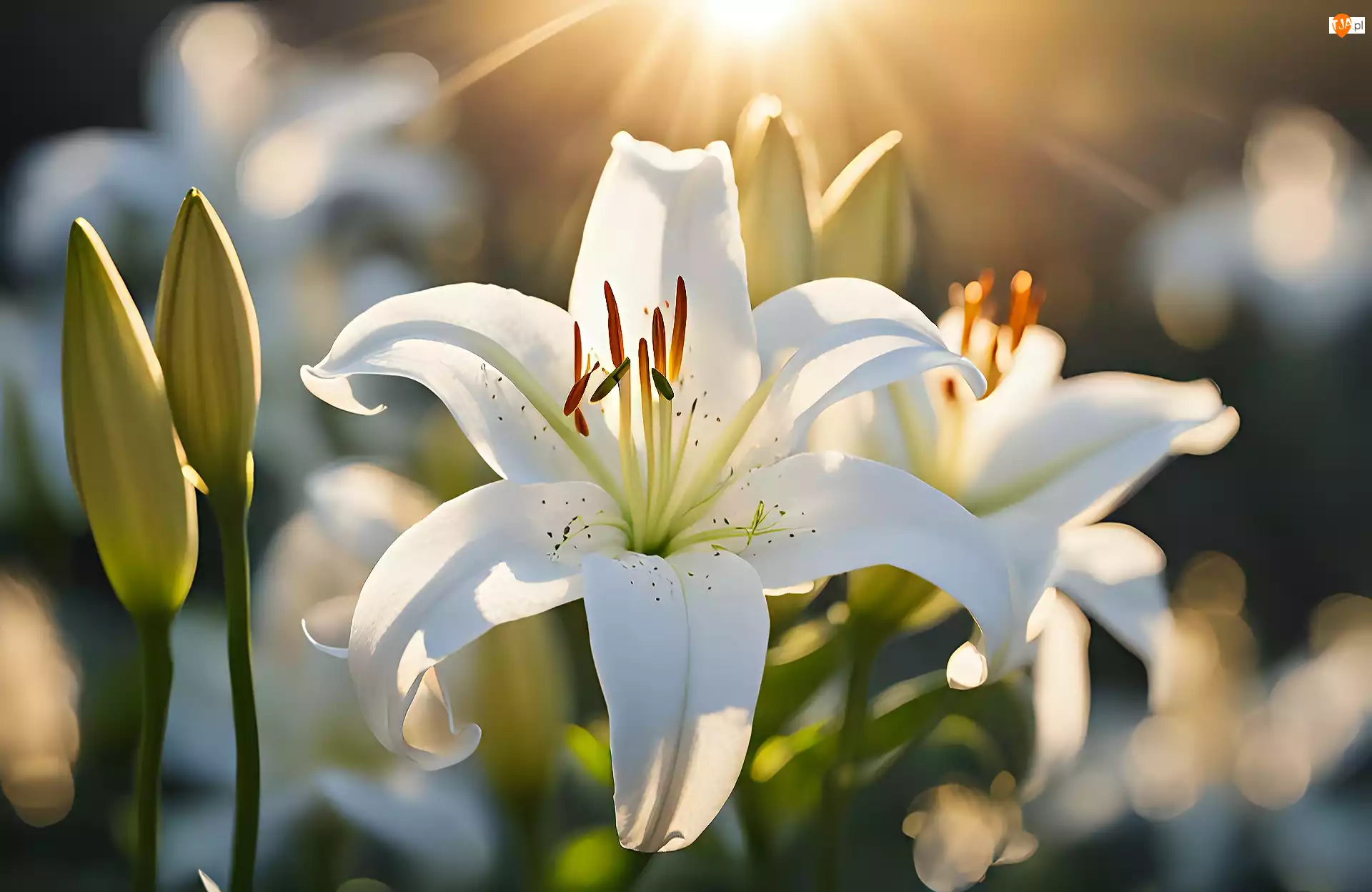 Grafika, Białe, Lilie, Pąki