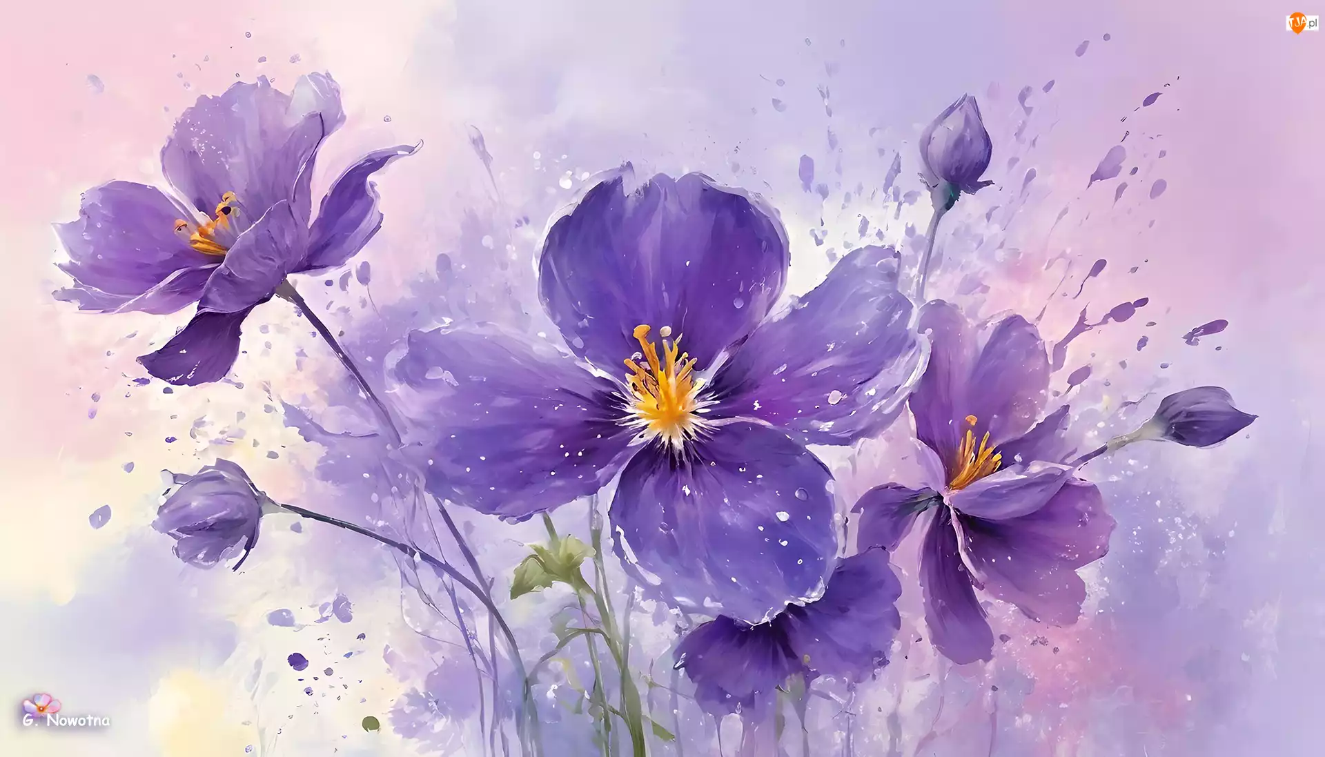 Grafika, Fioletowe, Kwiaty, Pąki