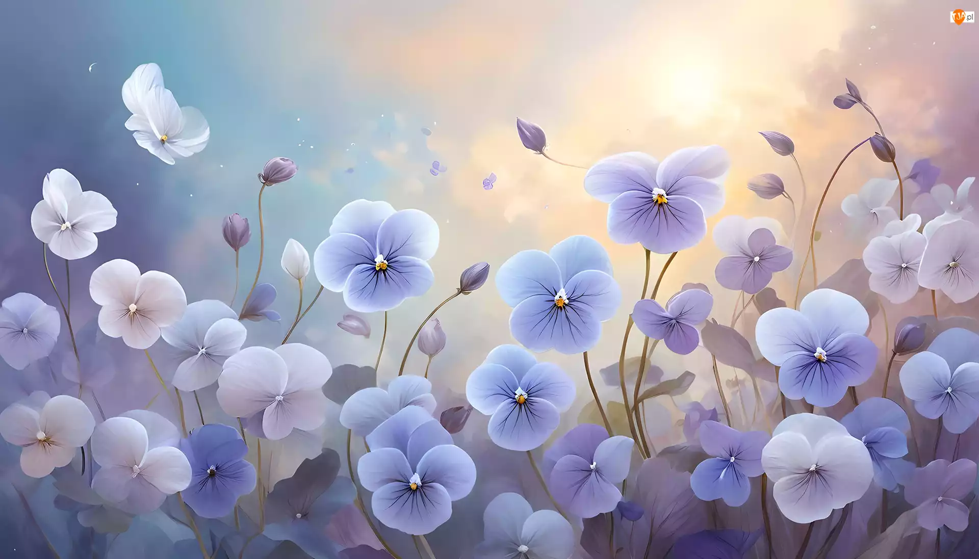 Grafika, Jasnofioletowe, Kwiaty, Bratki
