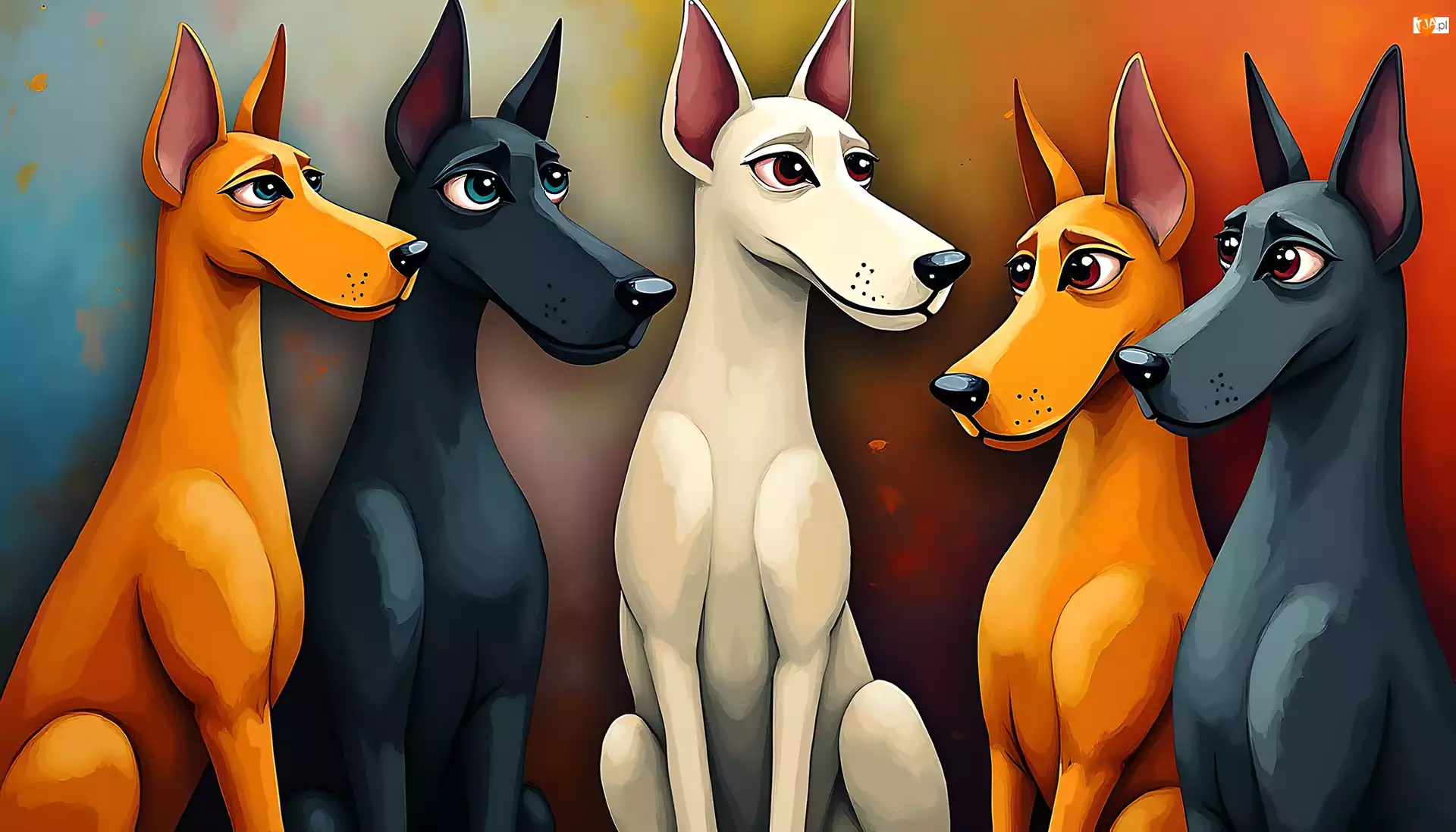 Grafika, Kolorowe, Psy