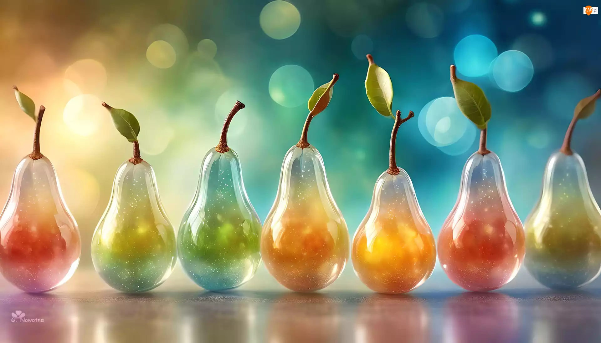 Grafika, Kolorowe, Szklane, Gruszki