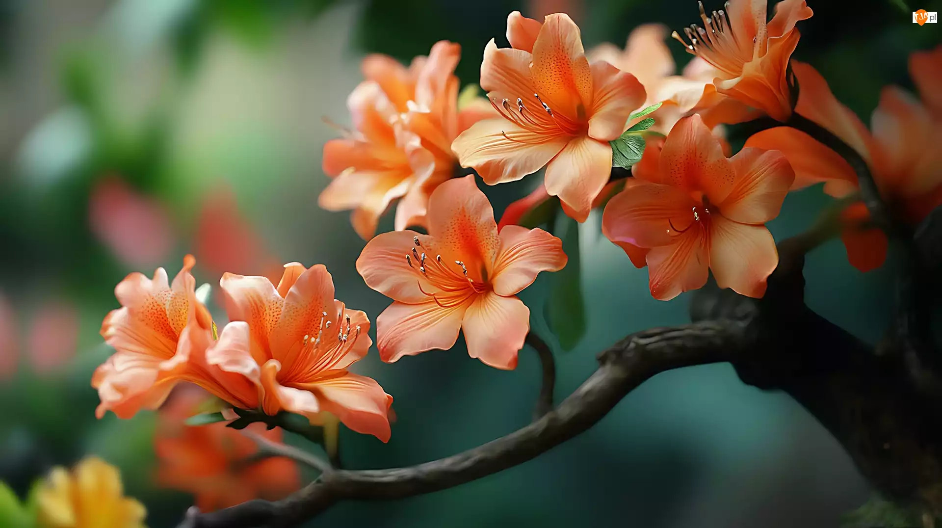 Grafika, Pomarańczowe, Kwiaty, Gałąź