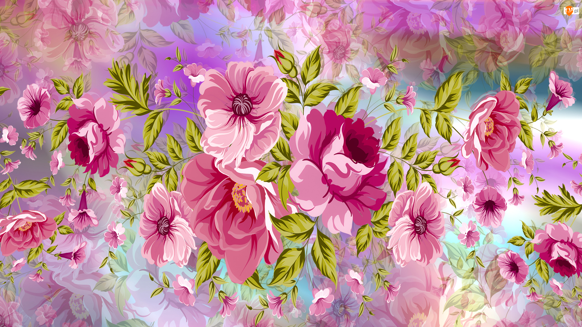 Kolorowe tło, Kwiaty, Róże, Grafika 2D