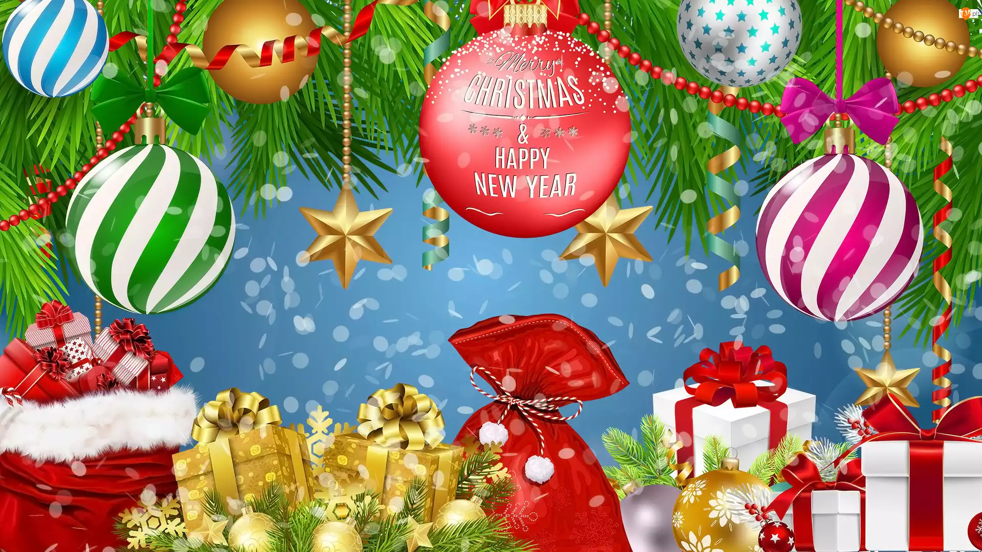 Prezenty, Grafika, Bombki, Boże Narodzenie, Życzenia