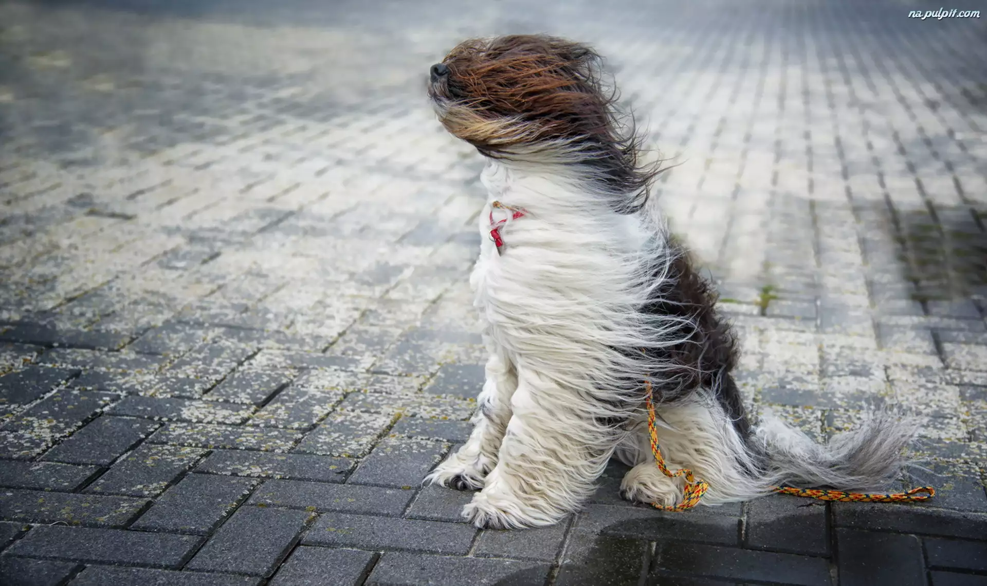 Chodnik, Pies, Wiatr, Smycz