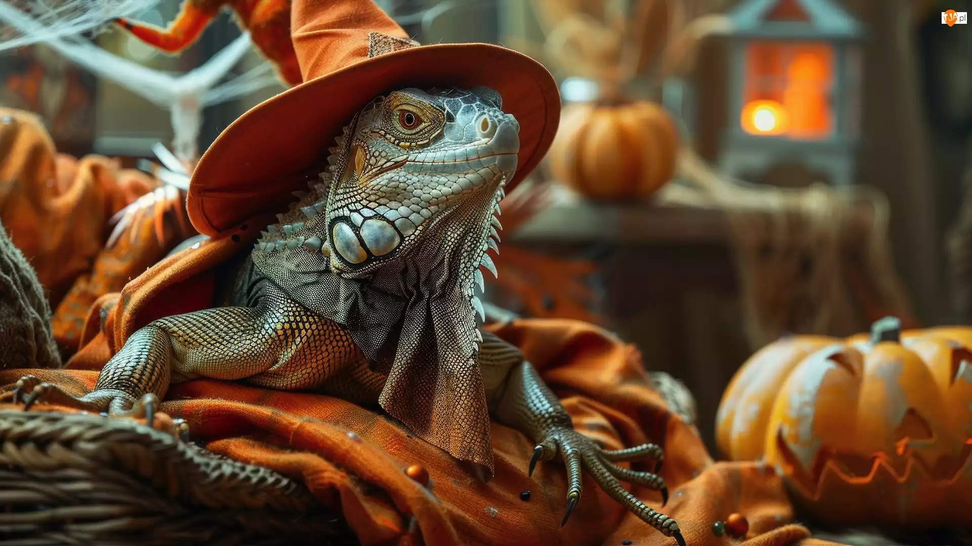 Halloween, Grafika AI, Kapelusz, Legwan, Dynia