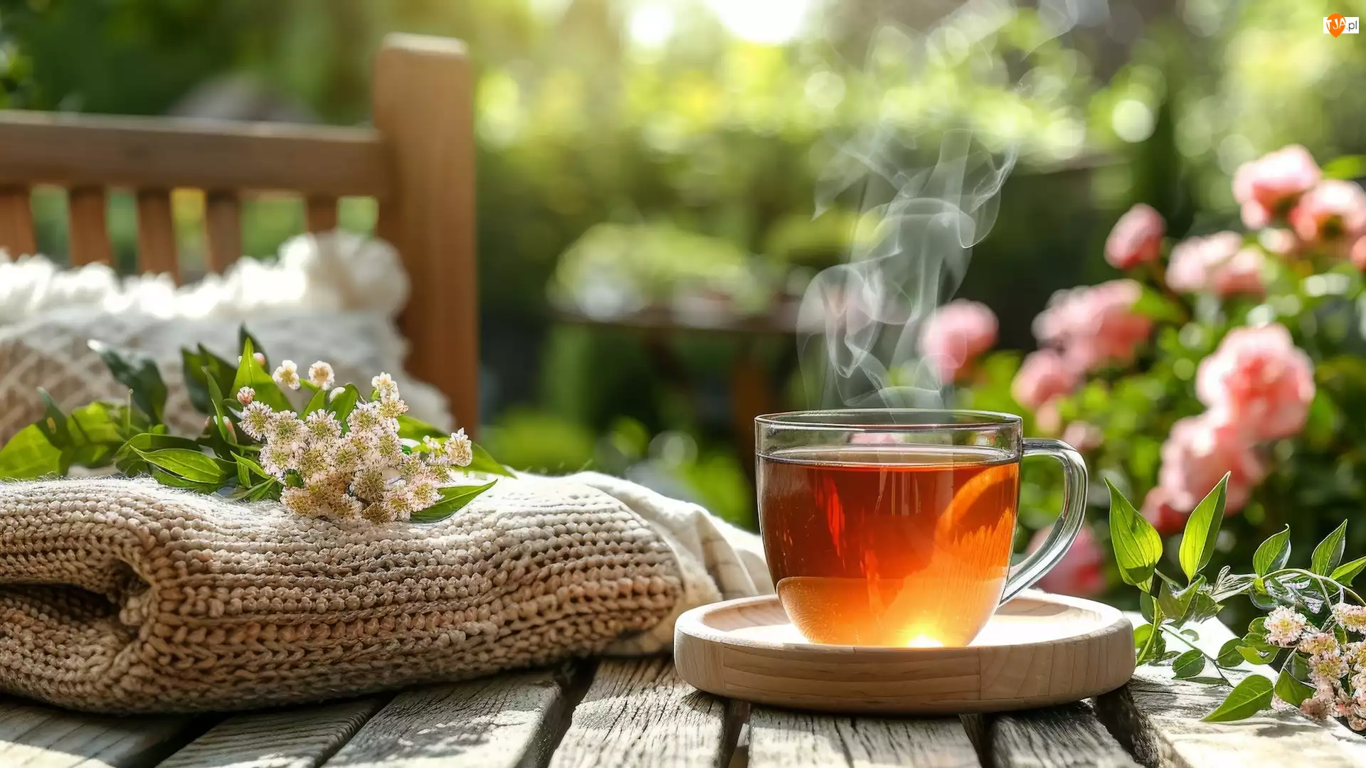 Herbata, Kwiaty, Filiżanka, Kompozycja, Szal