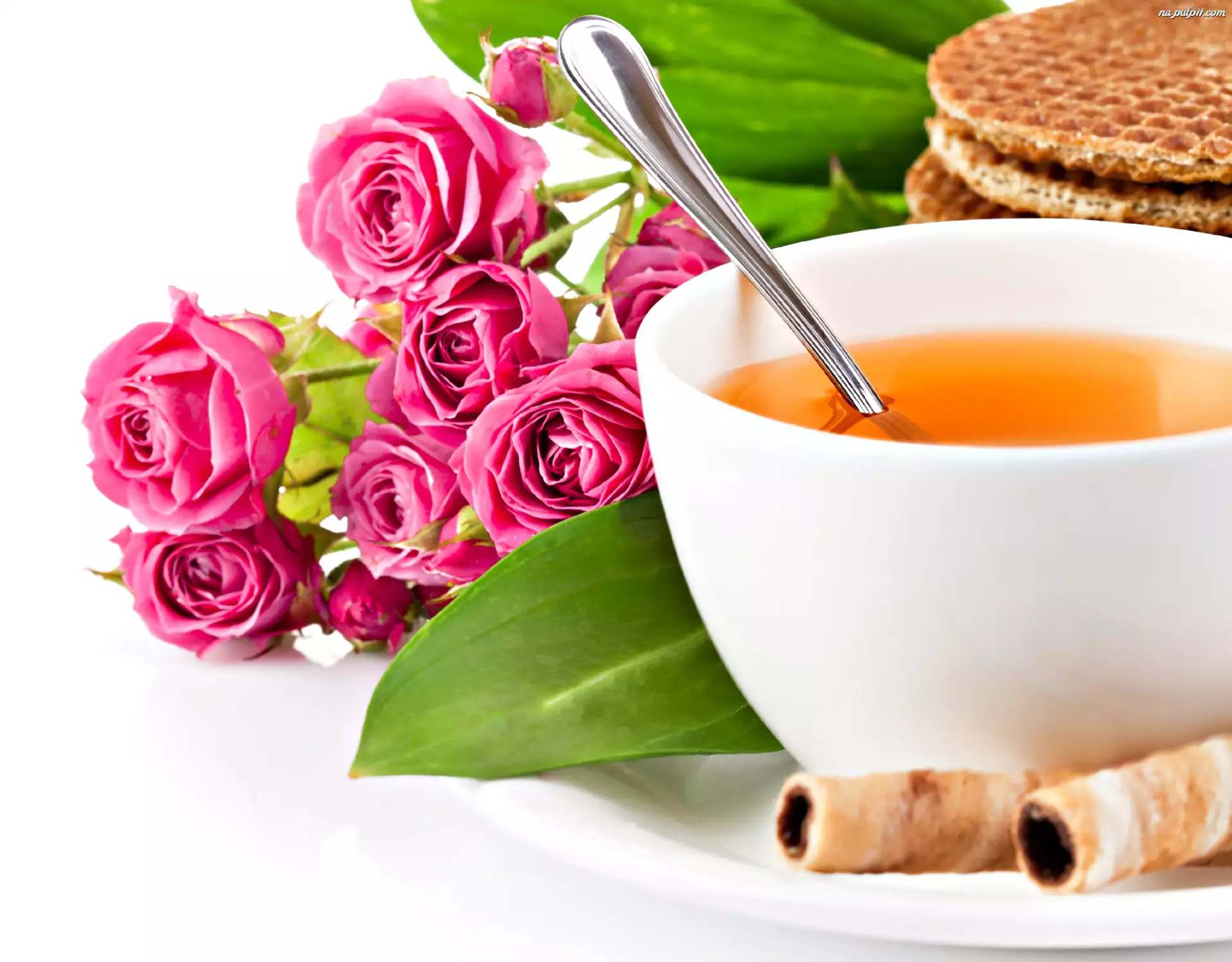 Herbatka, Śniadanie, Ciasteczka, Róże
