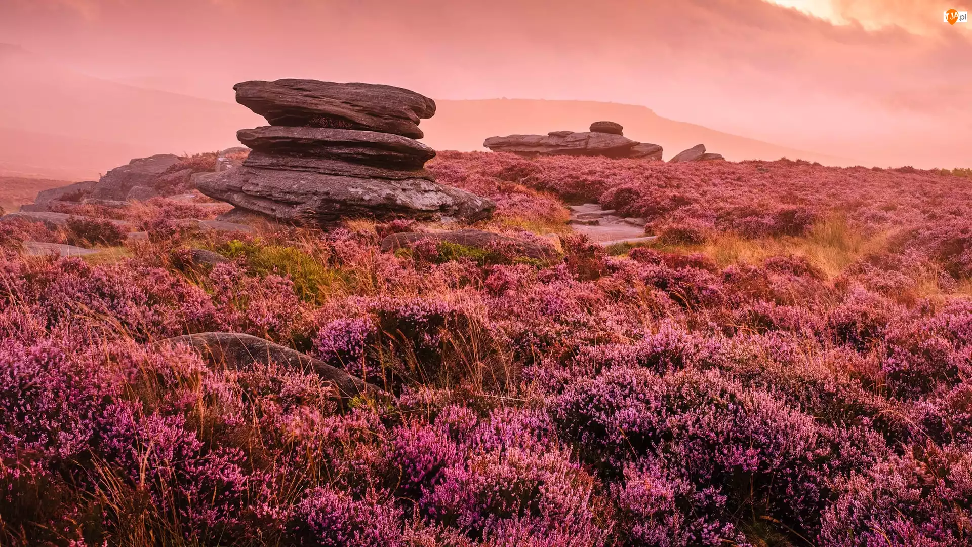 Hrabstwo Derbyshire, Hathersage, Skała, Anglia, Wzgórze, Wrzosowisko, Park Narodowy Peak District