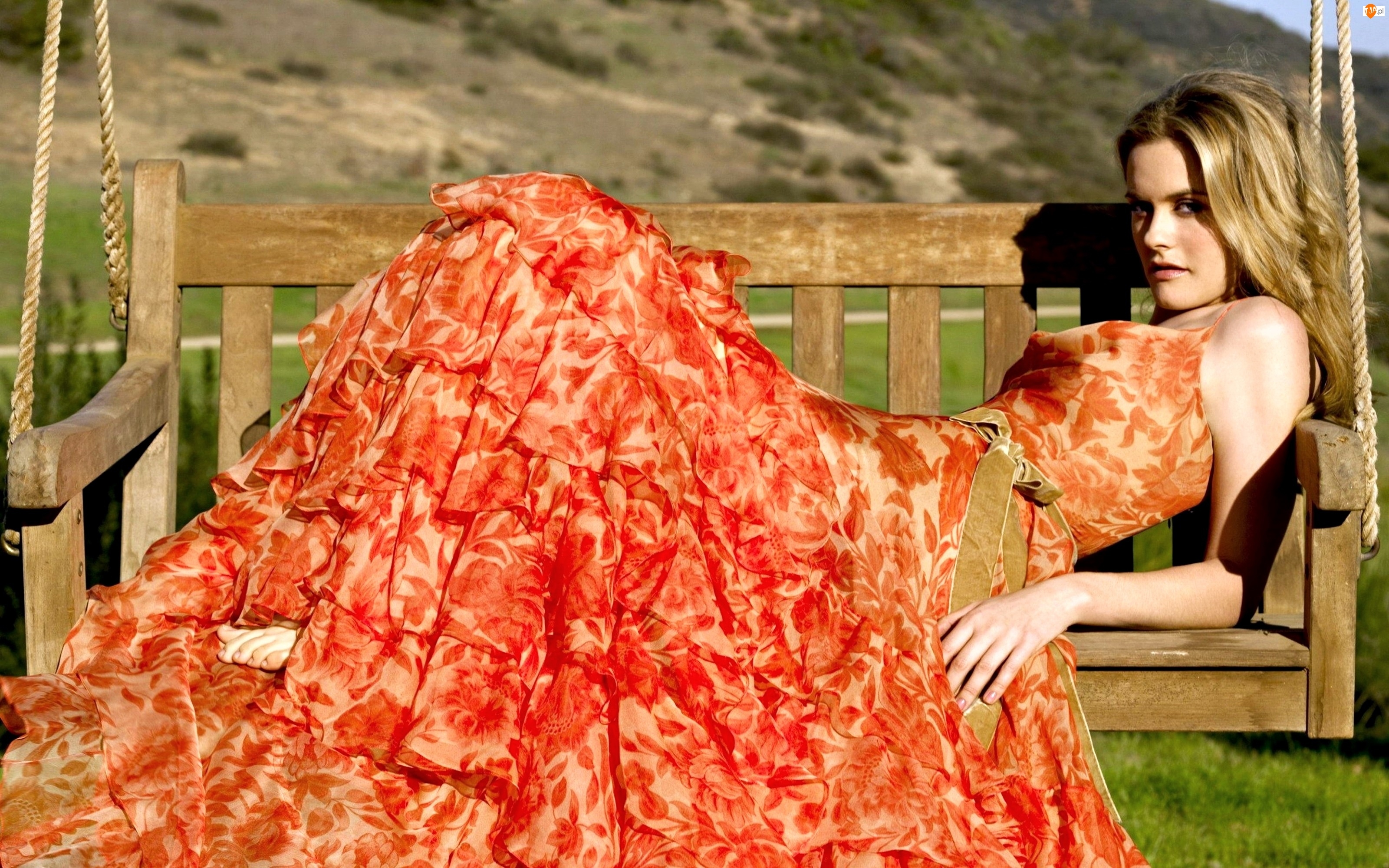 Huśtawka, Alicia Silverstone, Kolorowa, Modelka, Suknia