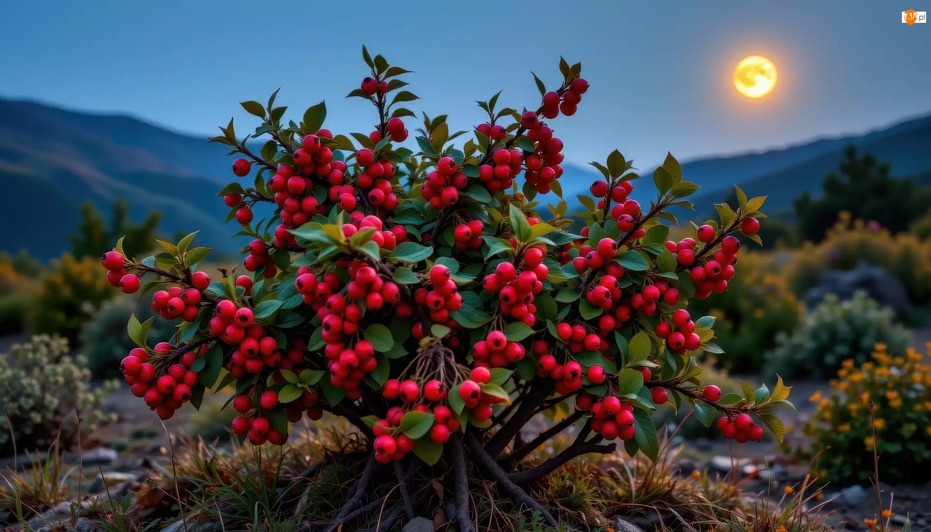 Jagody, Krzew, Owoce, AI, Czerwone, Księżyc