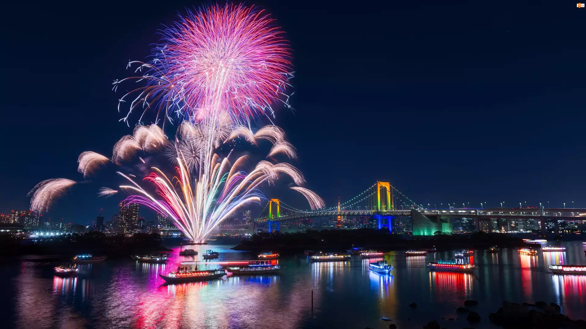 Japonia, Most, Tokio, Fajerwerki