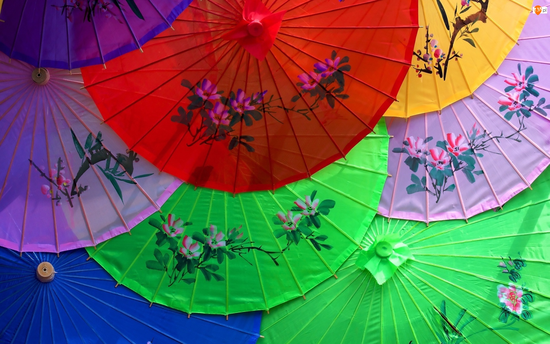 Japońskie, Kwiatuszki, Parasolki, Kolorowe
