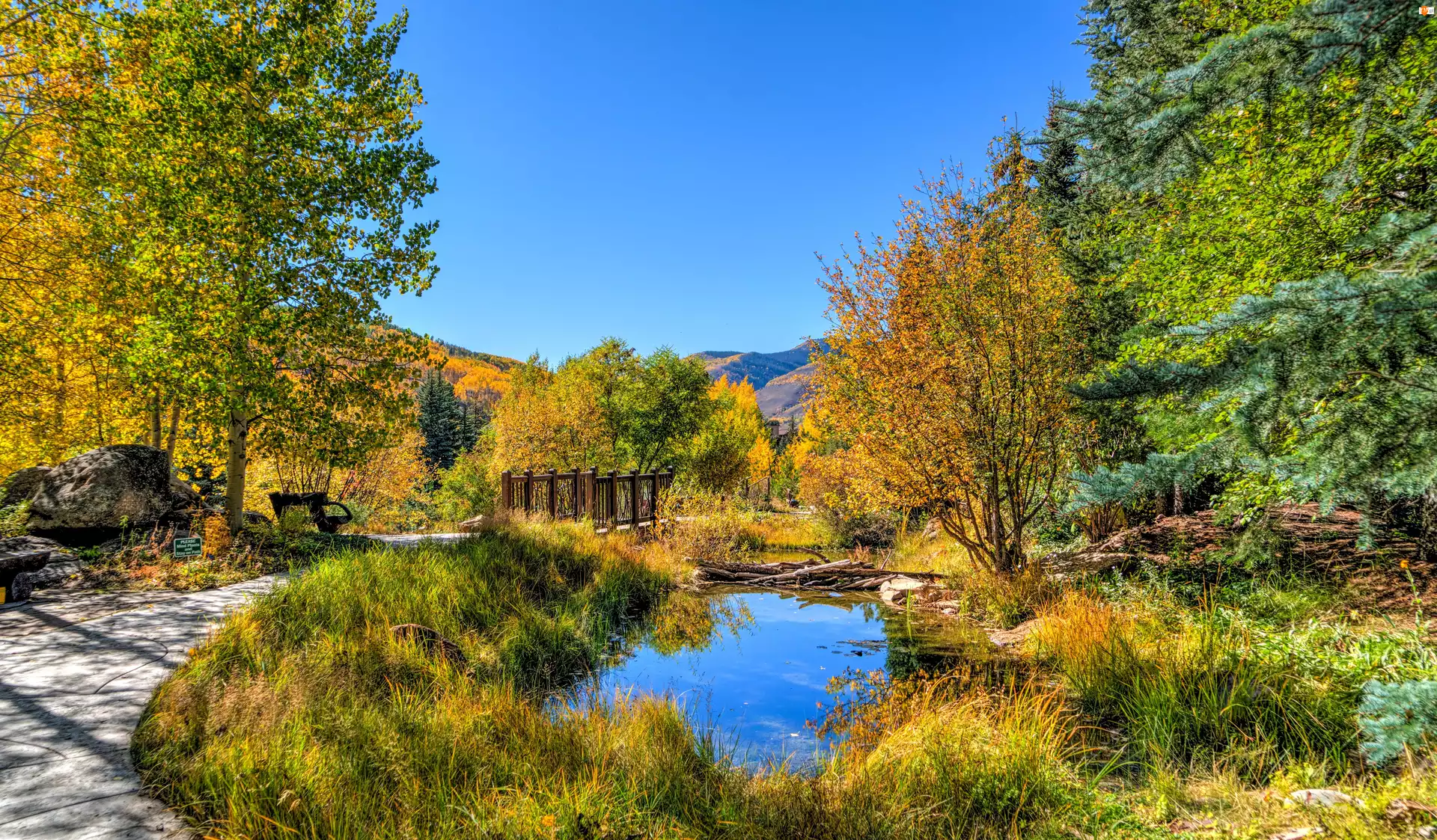 Drzewa, Jesień, Staw, Kolorowe