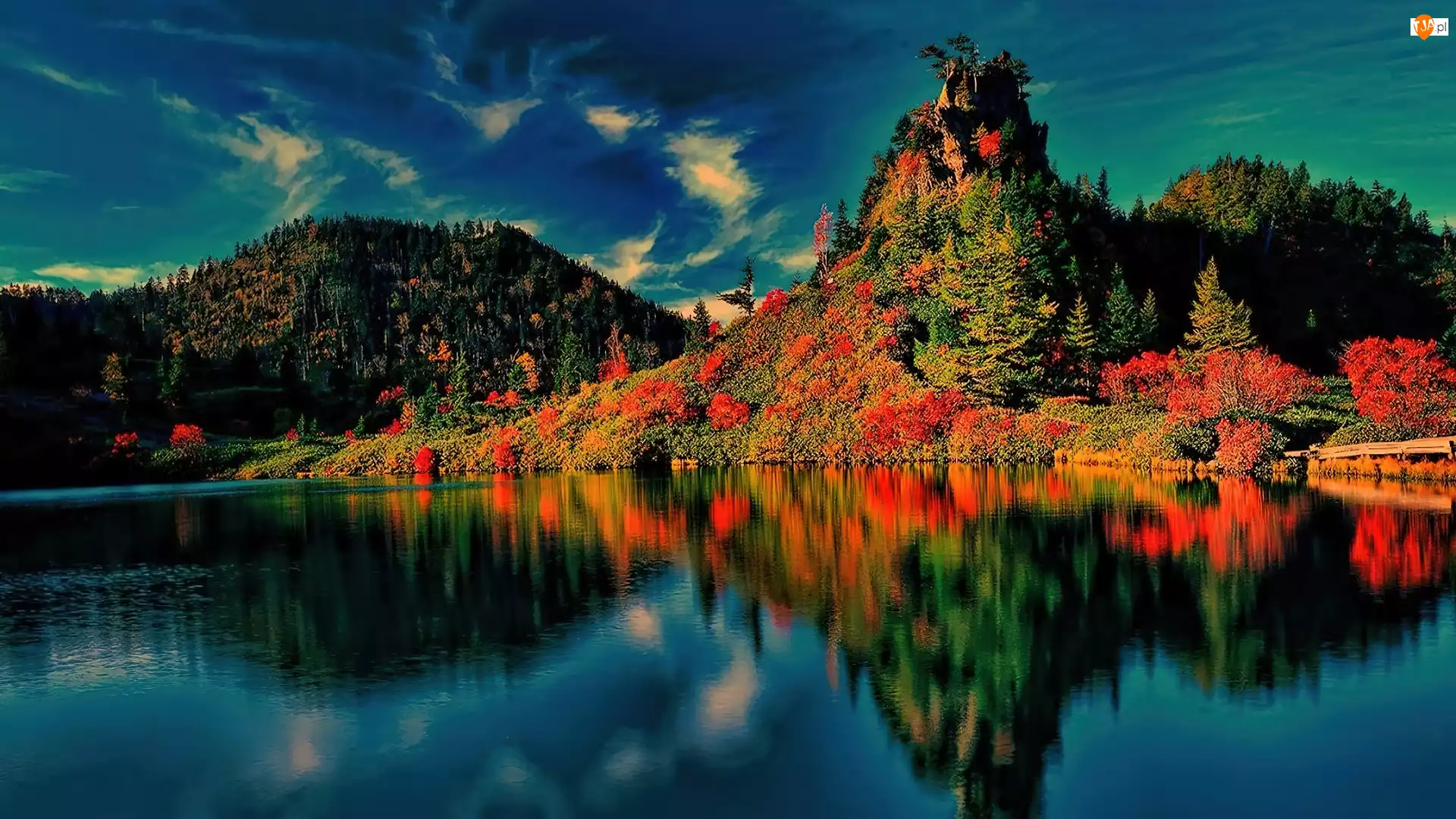 Jesień, Góry, Odbicie, Lasy, Lustrzane