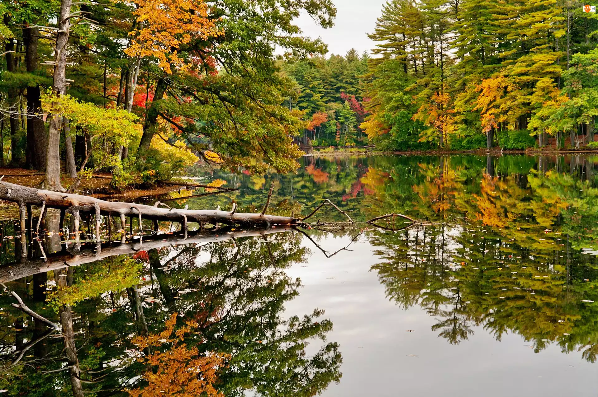 Odbicie, Jesień, Jezioro, Las