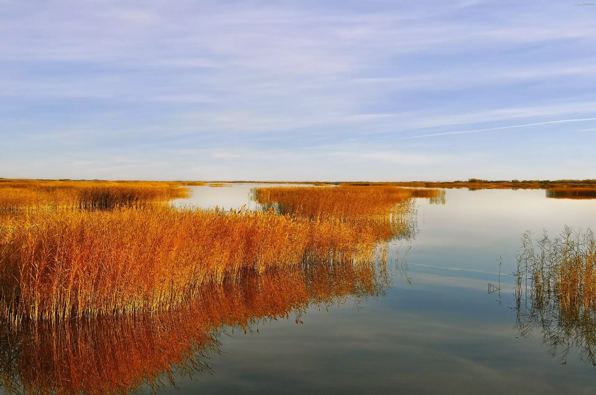 Trzciny, Jesień, Jezioro, Rude