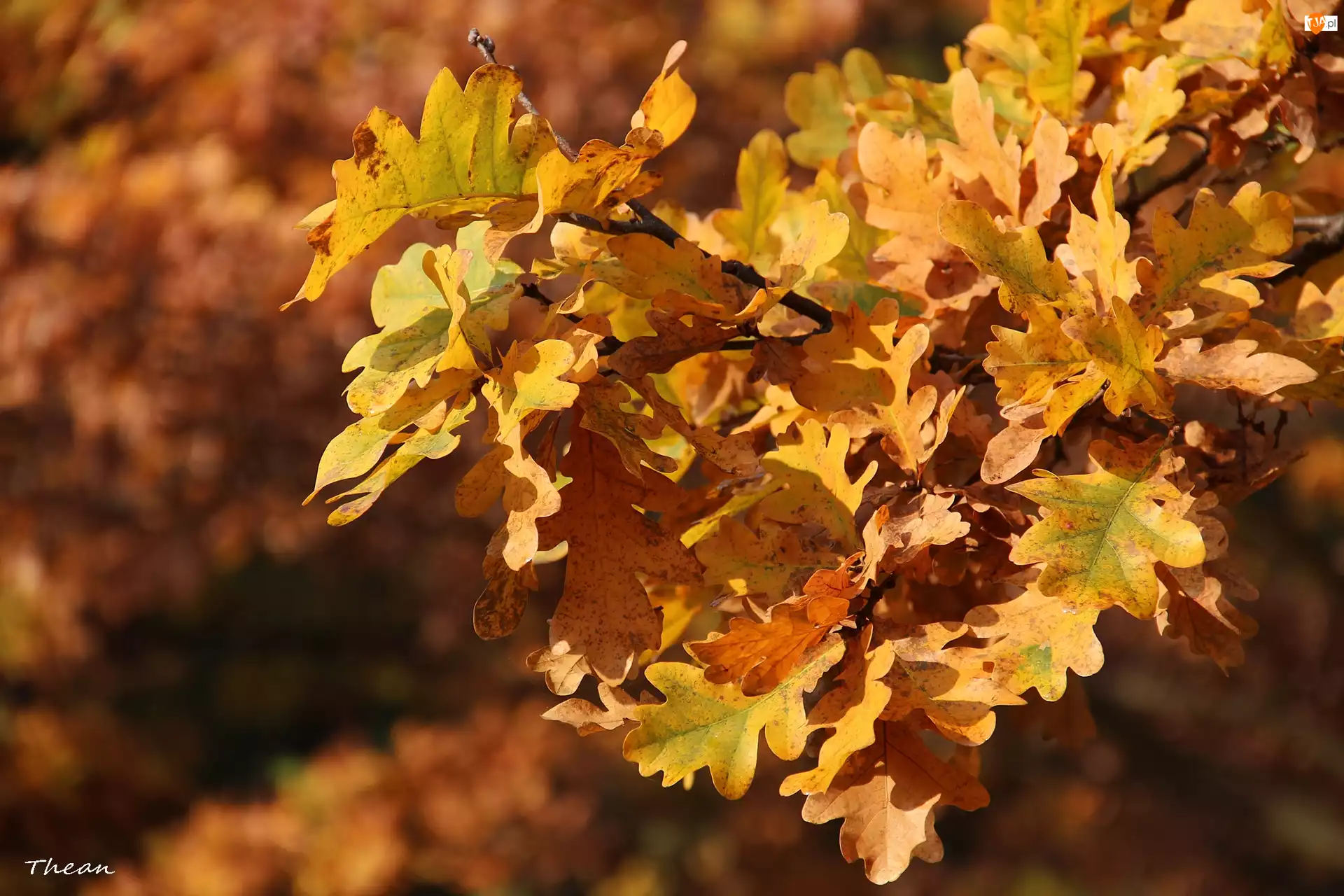 Jesień, Żółto, Liście, Brązowe, Dębu