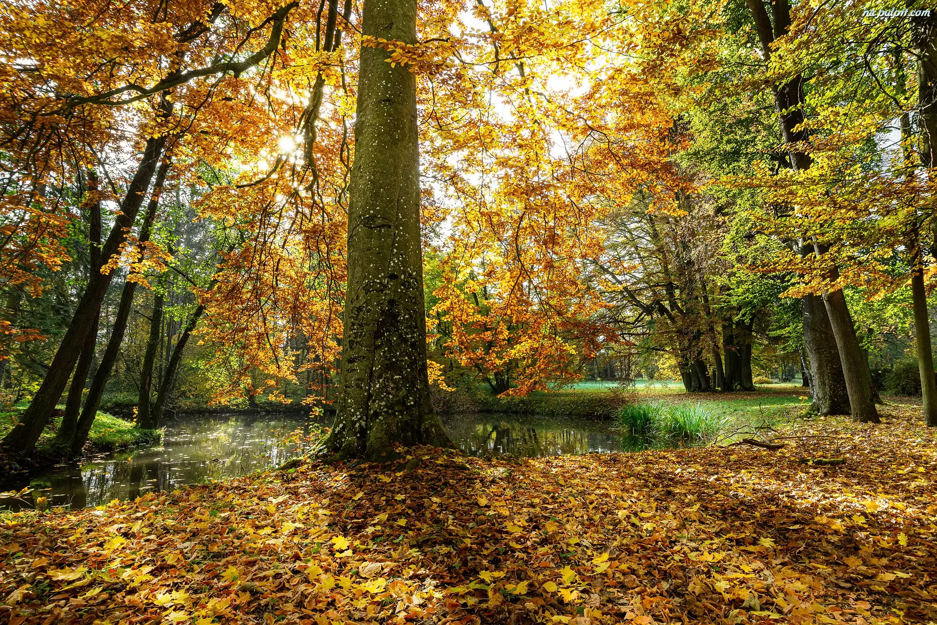 Park, Jesień, Światło, Staw, Słoneczne, Drzewa