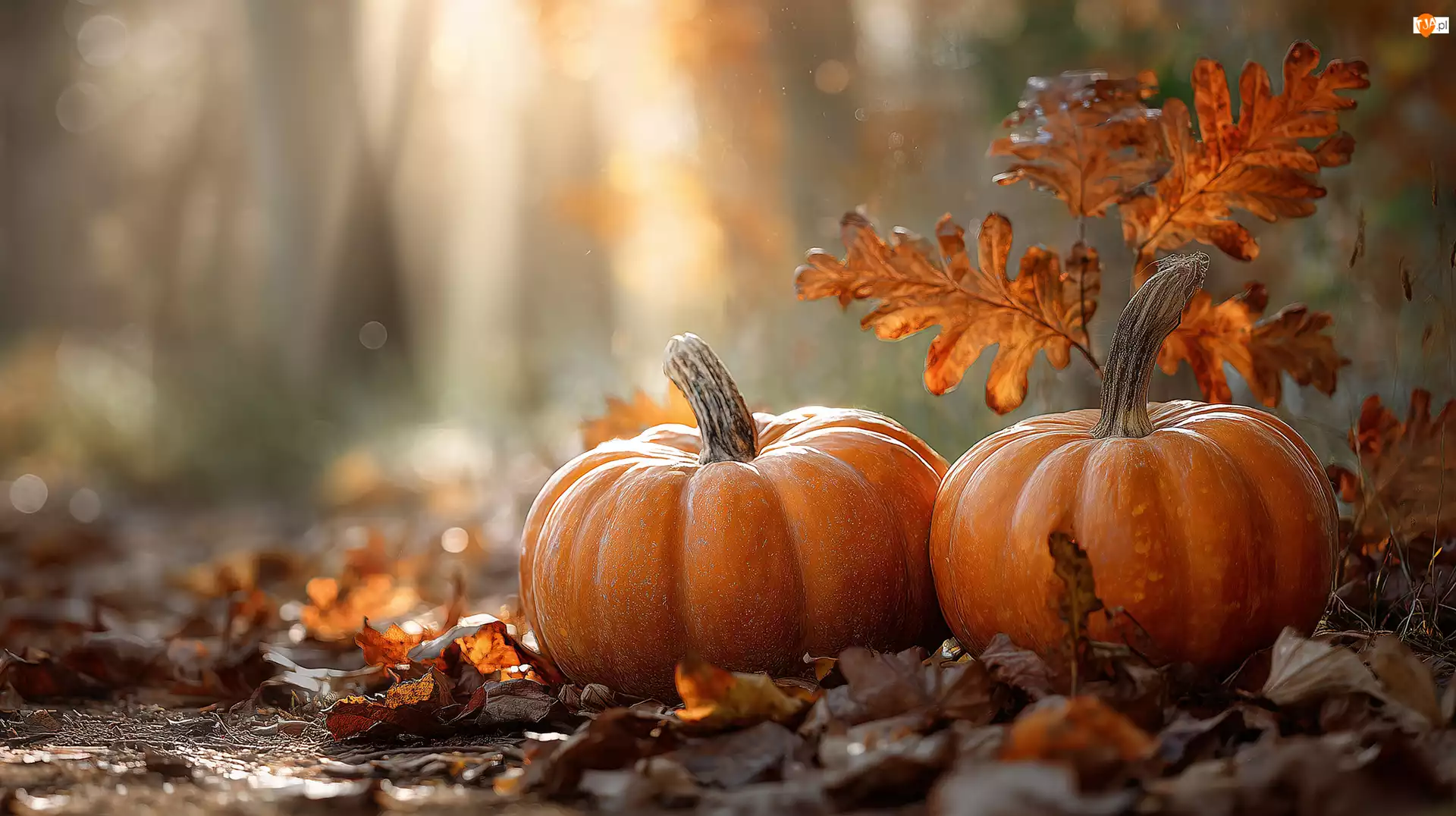 Jesienne, Grafika AI, Dynie, Dwie, Liście