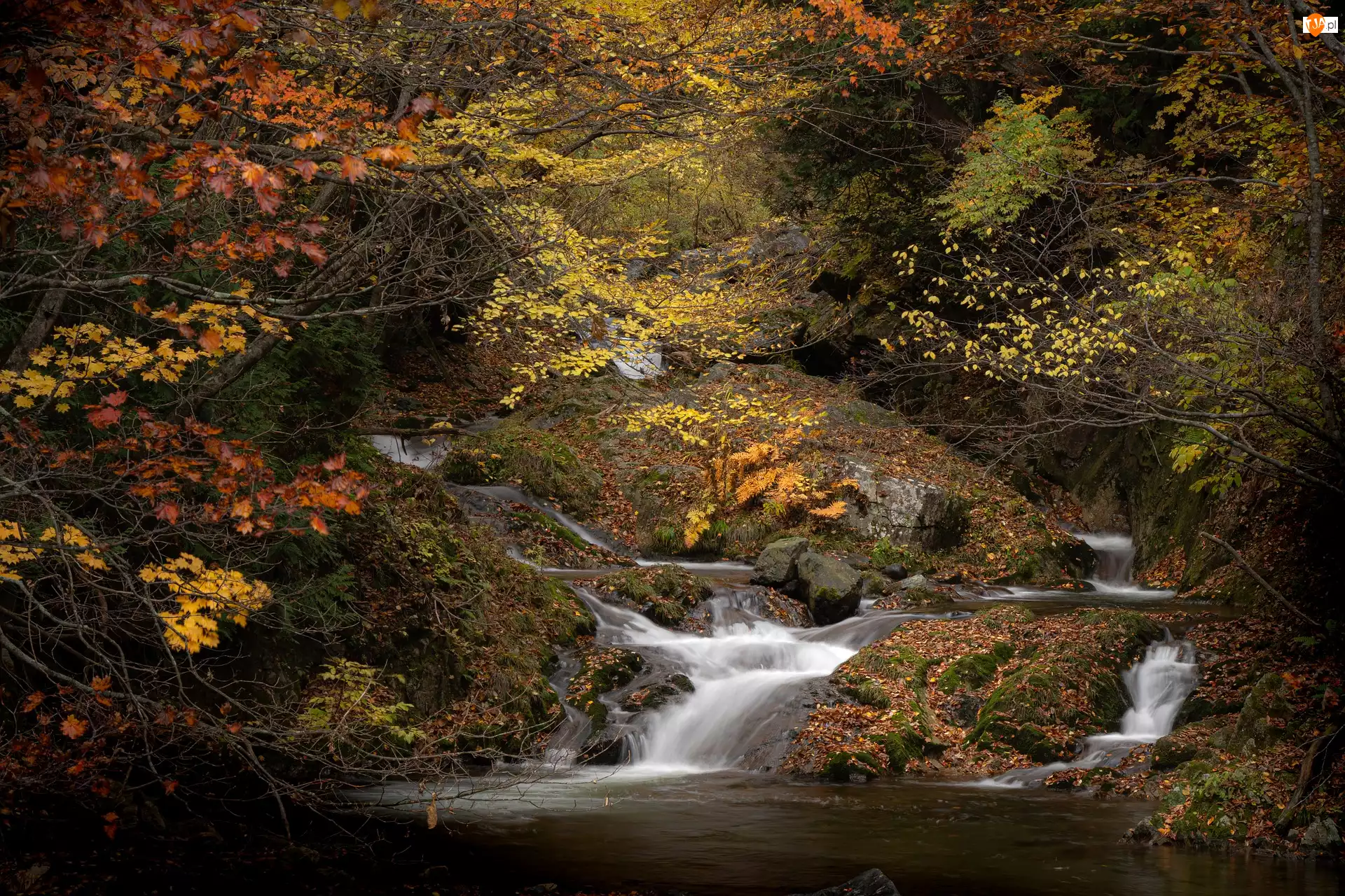 Las, Drzewa, Jesień, Liście, Rzeka, Potok
