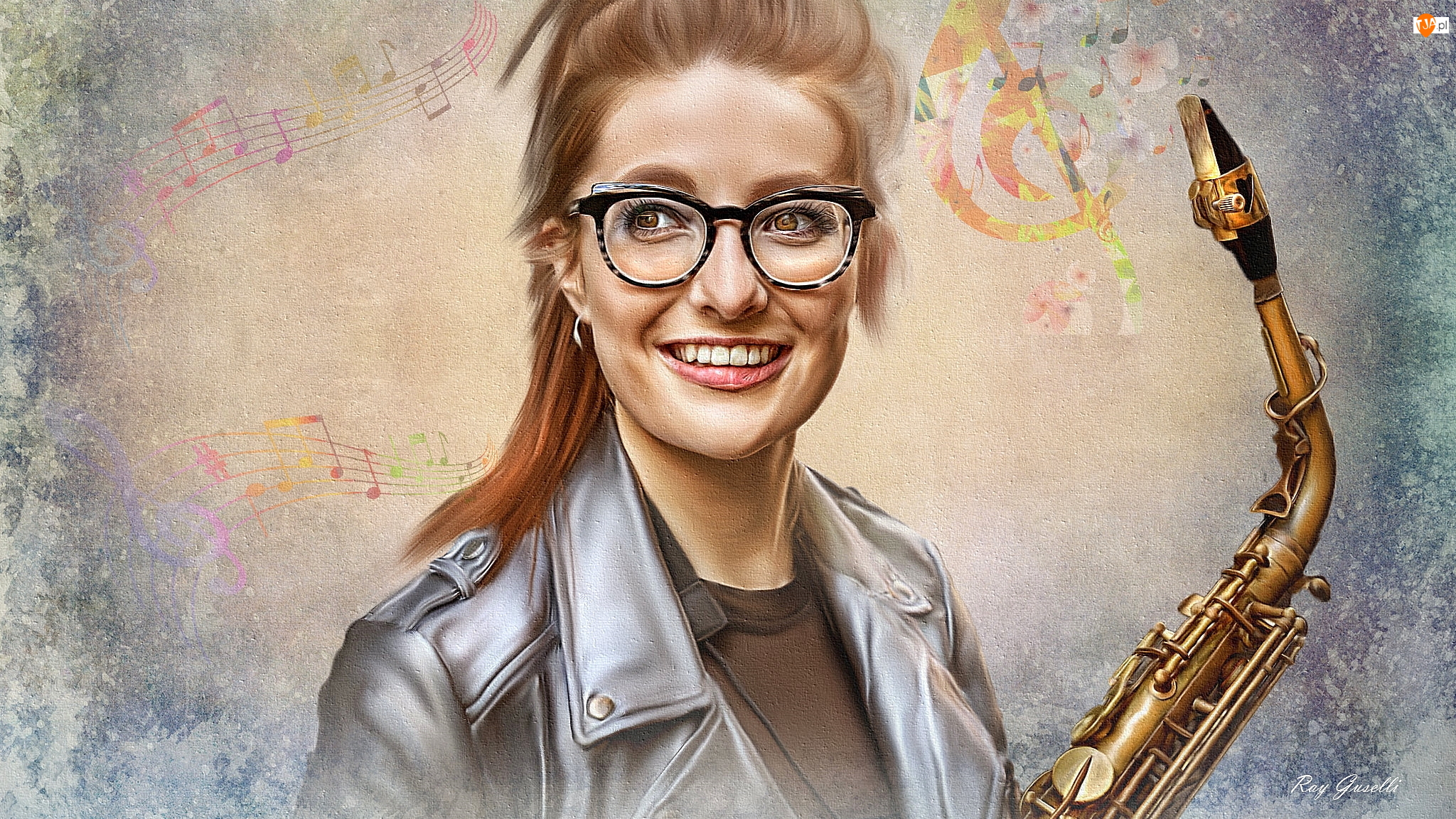 Grafika, Kobieta, Jess Gillam, Saksofon