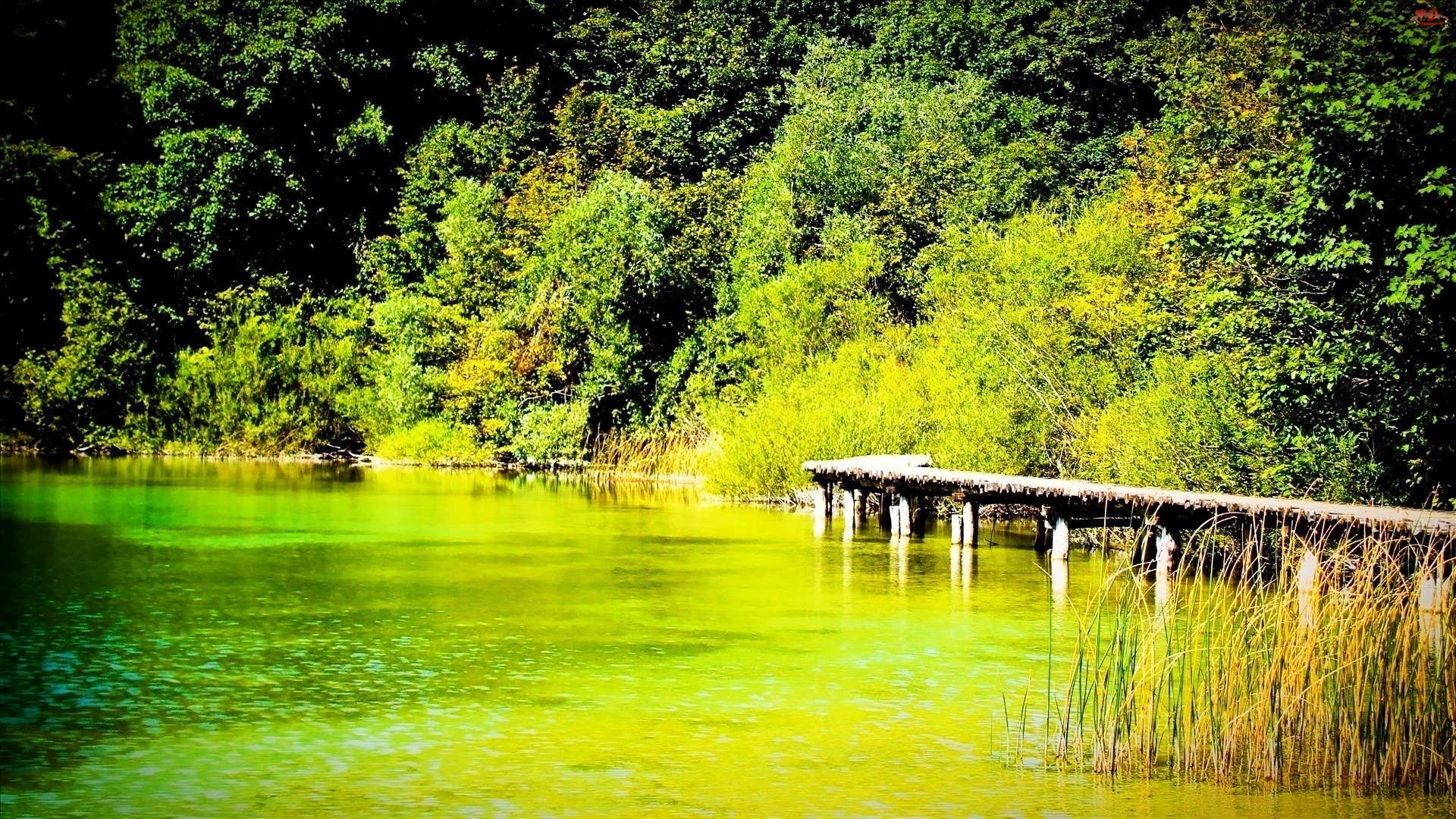 Brzeg, Jezioro, Pomost, Zalesiony