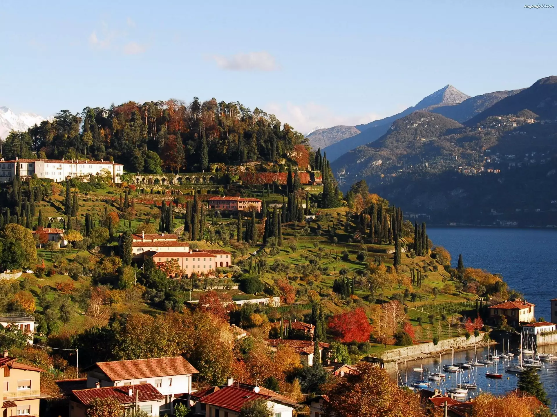 Jezioro, Miasteczko, Lombardia, Jachty, Góry, Com