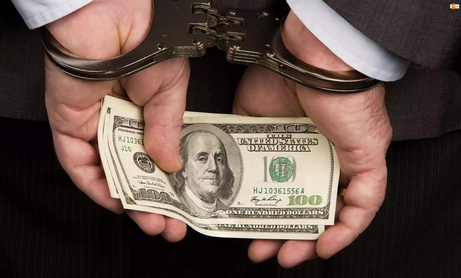 Kajdanki na dłoniach z dolarami