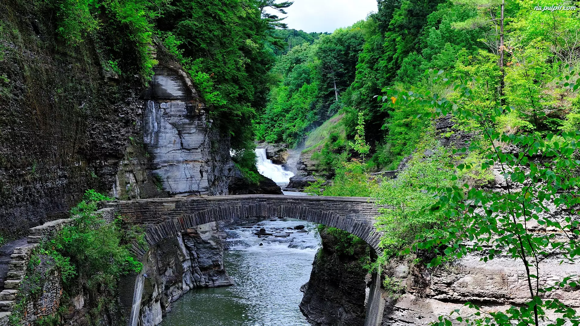 Kamienny, Rzeka, Skały, Roślinność, Most, Drze