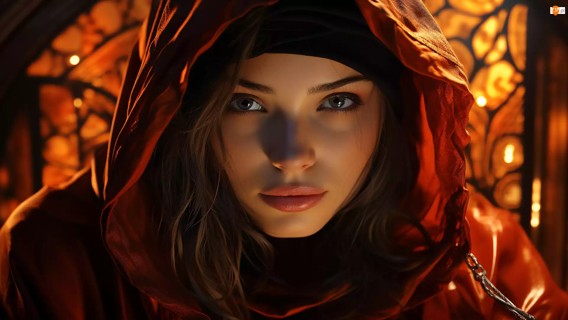 Kaptur, Kobieta, Twarz, Pomarańczowy