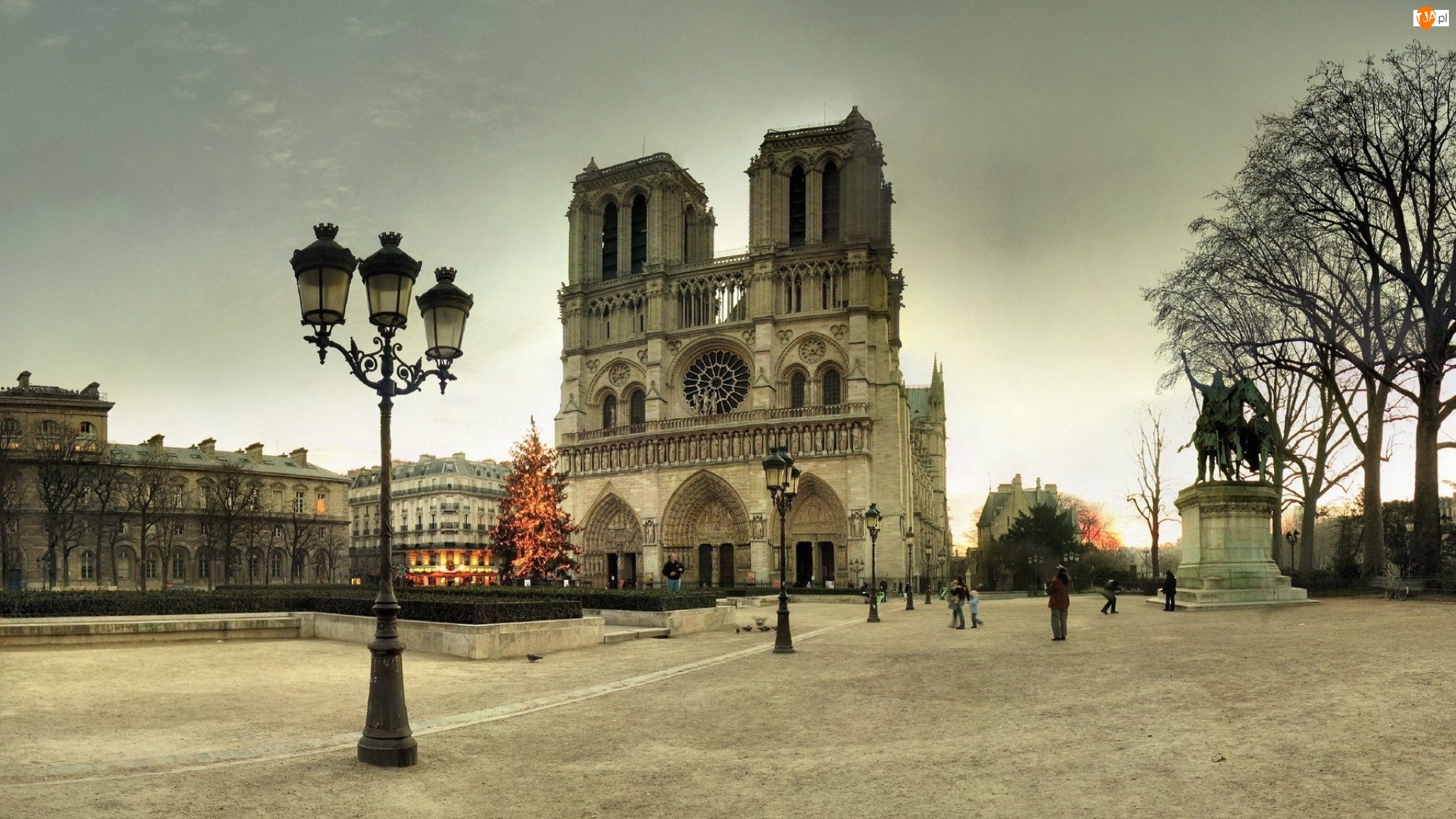 Francja, Paryż, Notre, Choinka, Katedra, Dame