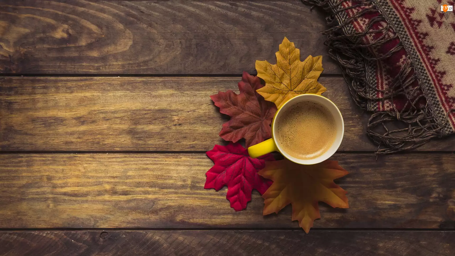 Kawa, Kolorowe, Deski, Kubek, Szalik, Klonu, Liście