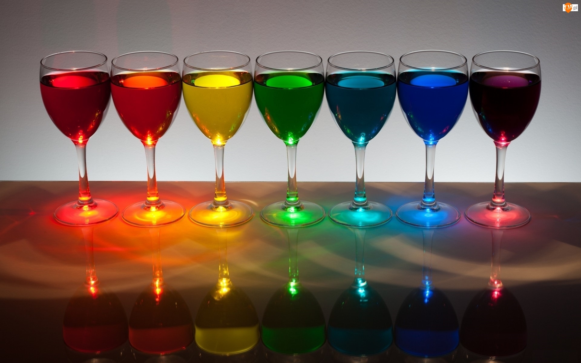 Kieliszki, Odbicie, Kolorowe, Napoje