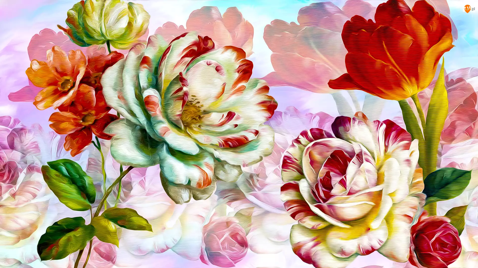 Grafika, Kwiaty, Tulipan, Róże