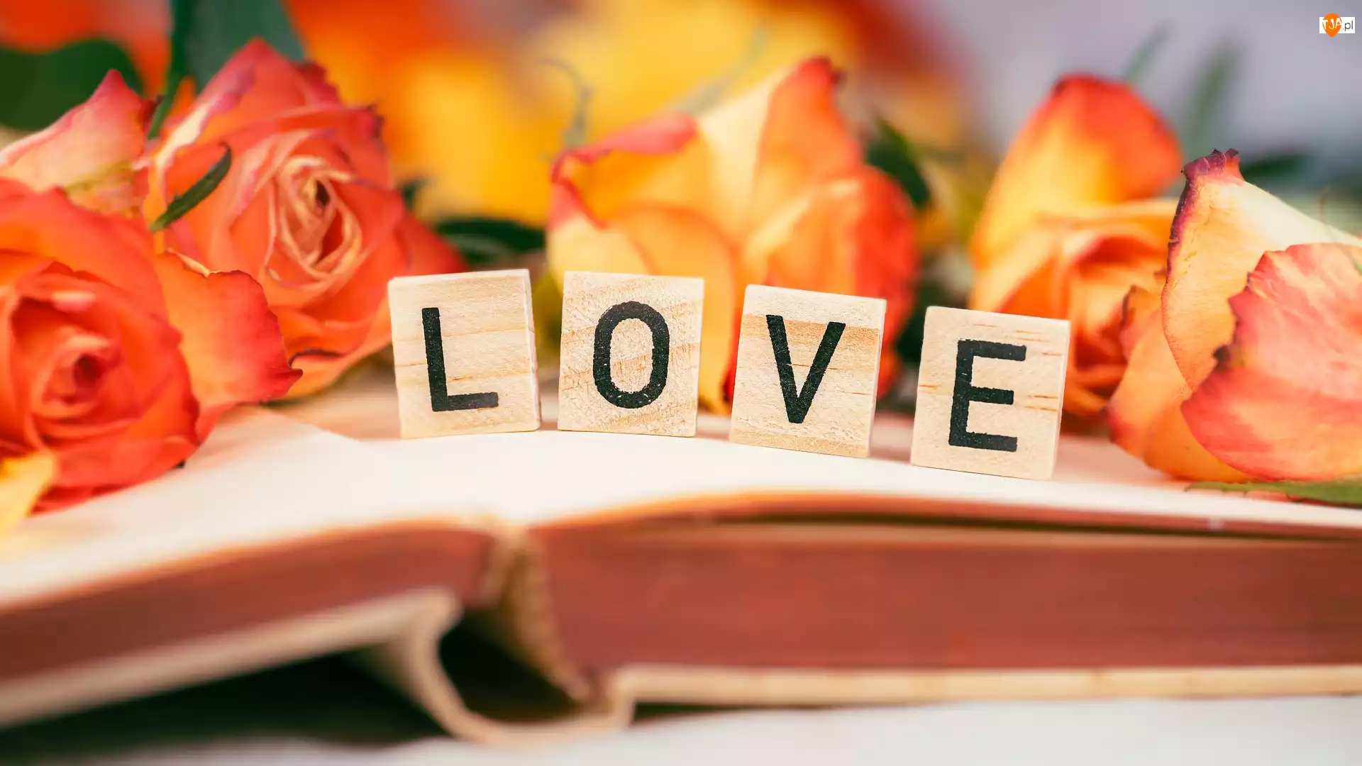 Klocki, Love, Róże, Książka, Napis