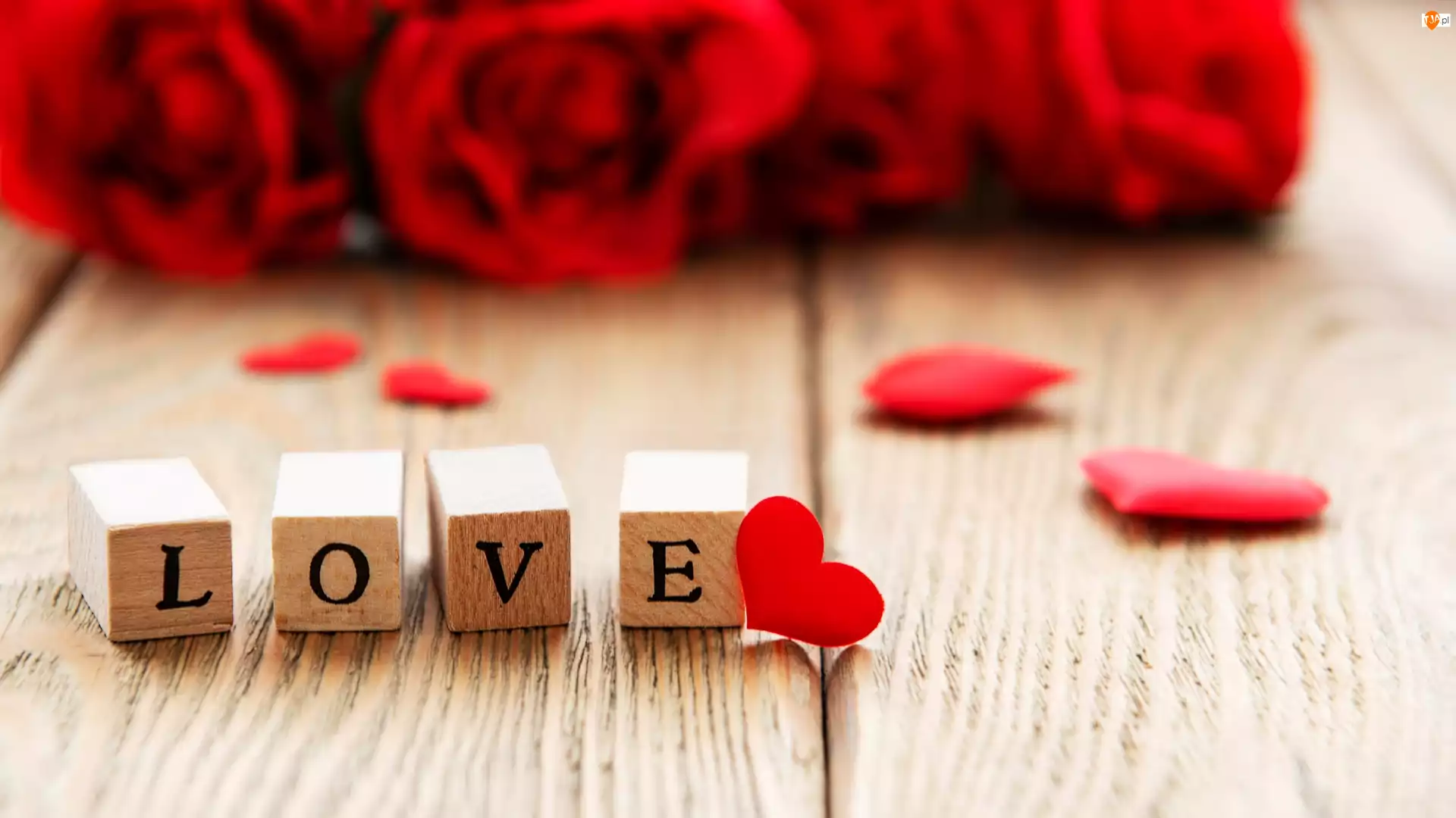 Serce, Klocki, Love, Róże, Miłość, Czerwone, Rozmycie, Napis